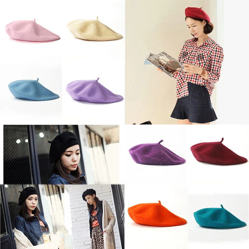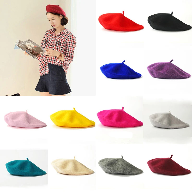 Берет женский осенне-зимний шерстяной, ярких цветов