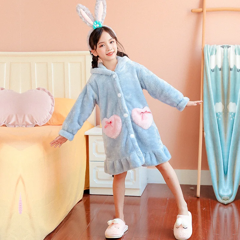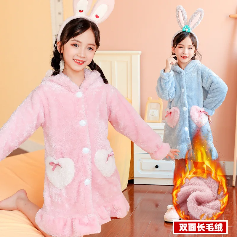 Топы для девочек, ночная рубашка, новинка зимы 2021, стильные детские пижамы, детский плотный теплый фланелевый Халат, двусторонний длинный бархатный халат