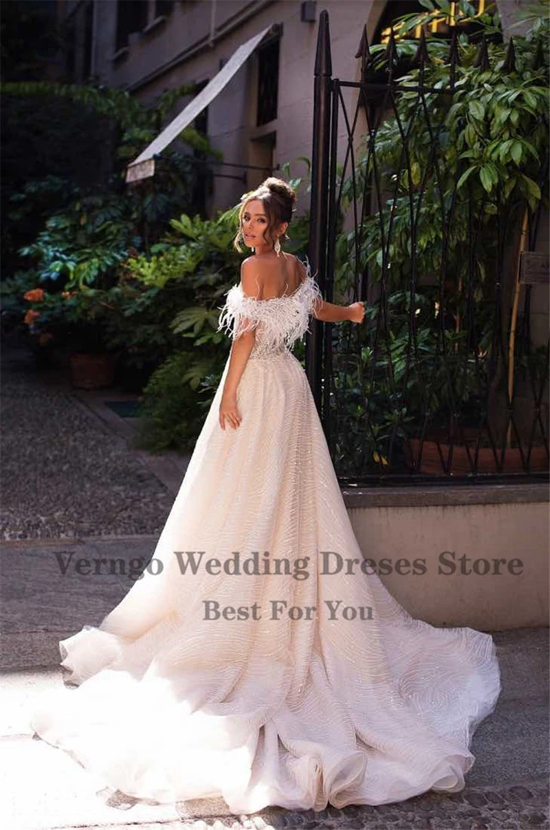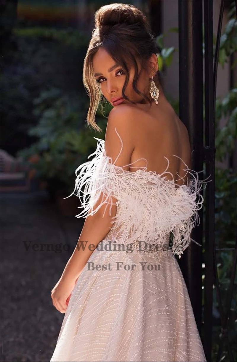 Очаровательное кружевное свадебное платье Verngo с открытыми плечами и рукавами, свадебные платья с страусиными перьями, элегантные свадебные платья на заказ, 2021