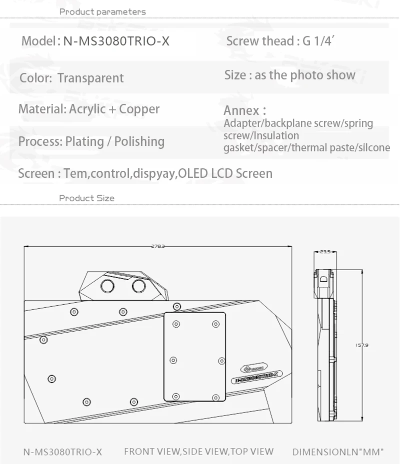 Модель: N-MS3090TRIO-X Бренд: Bykski Материал: Гальваническая медь высокой чистоты/прозрачный акрил