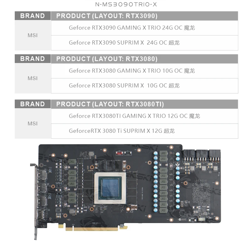 Водный блок Bykski для MSI RTX 3080 3080TI 3090 TRIO GAMING X OC Suprim X GPU Cardмедная Видеокарта радиатор в наличии