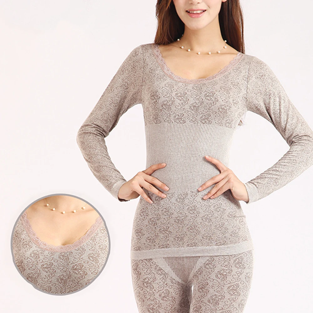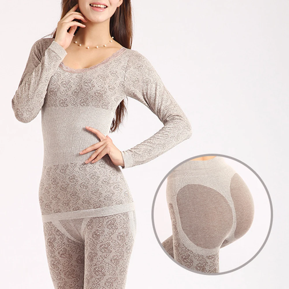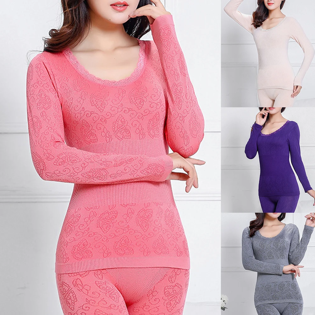 Осенне-зимнее женское термобелье, комплект женской одежды, бесшовный топ с длинным рукавом и круглым вырезом, кальсоны, комплект женского нижнего белья