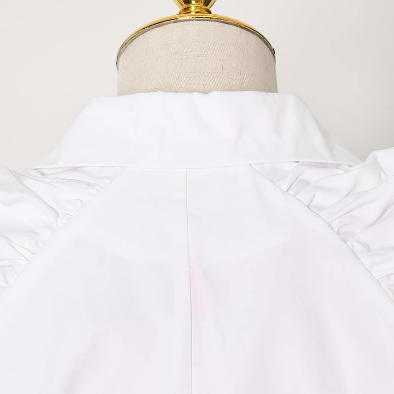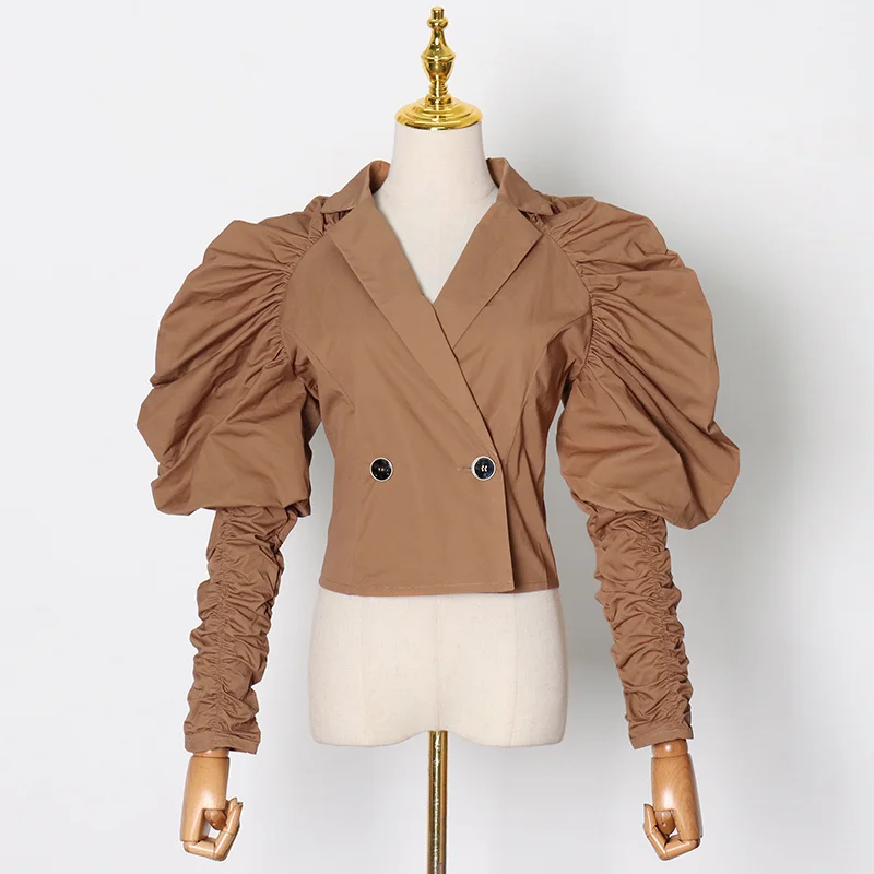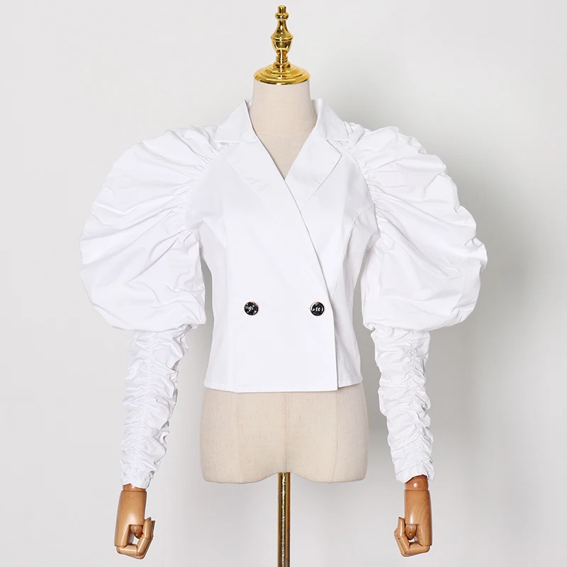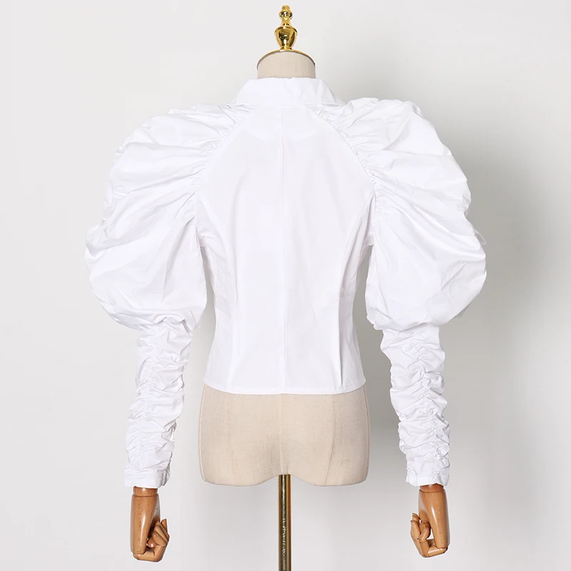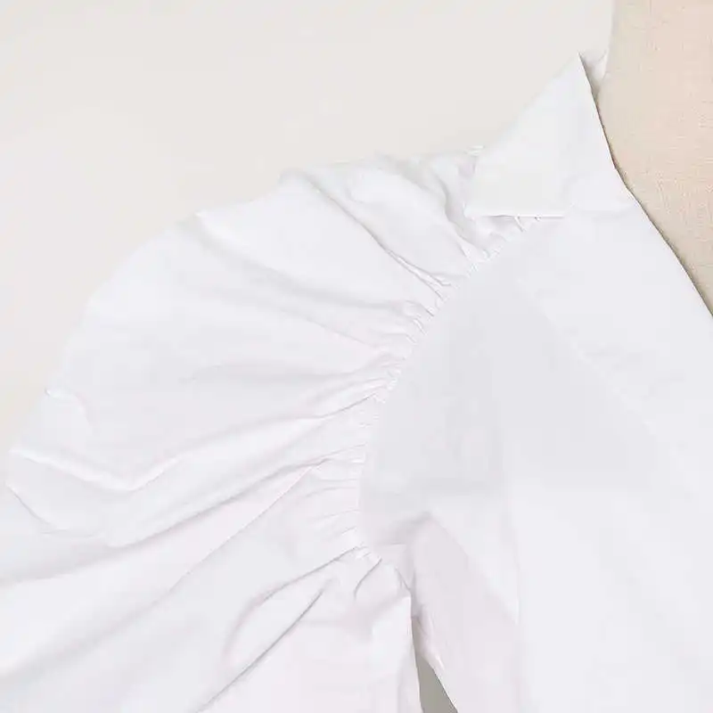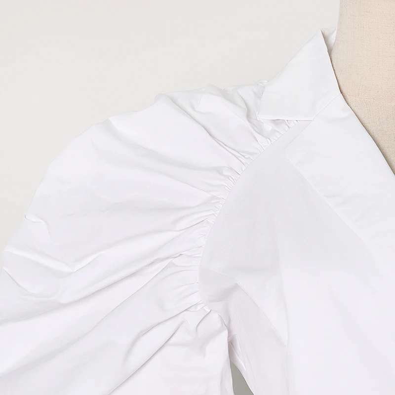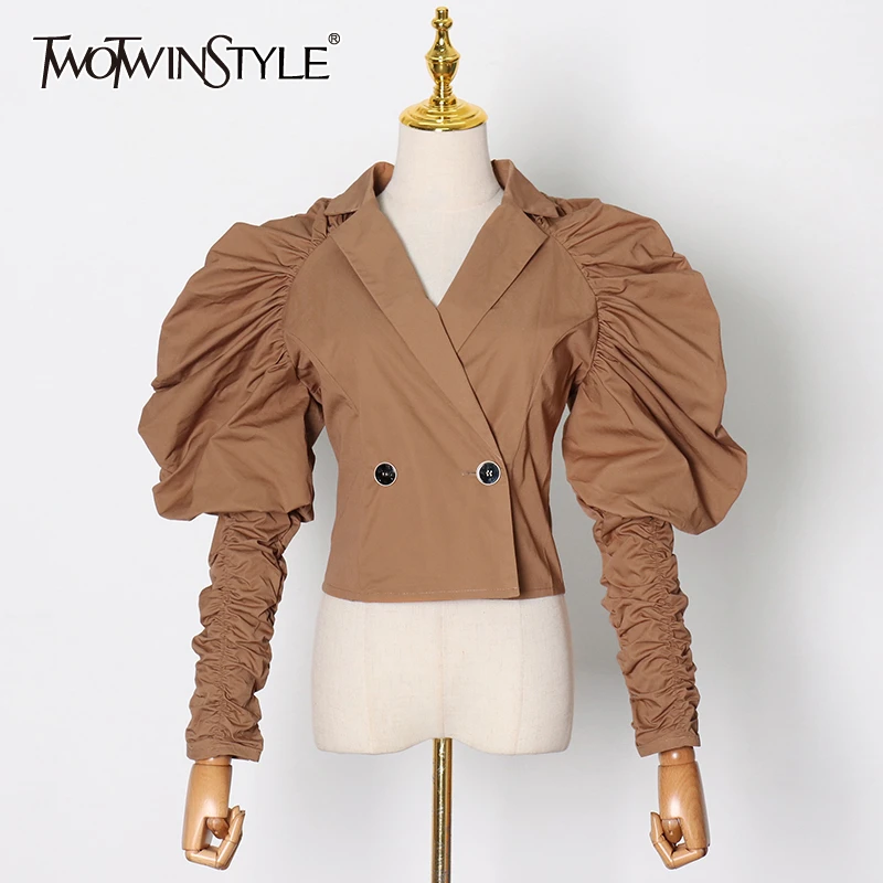 Женская туника с рюшами TWOTWIN, Повседневная Блузка с V-образным вырезом и пышными длинными рукавами, 2021