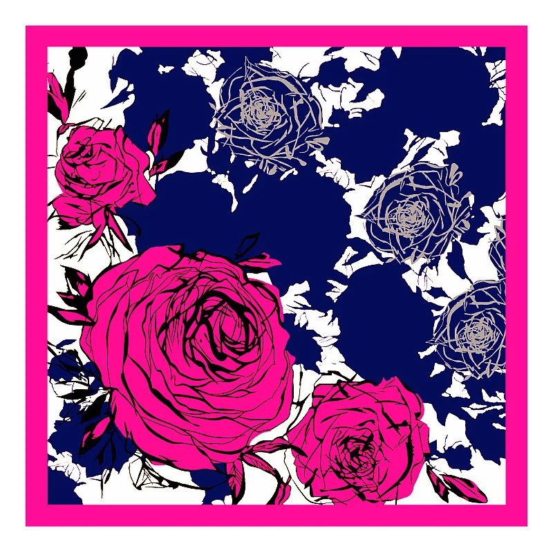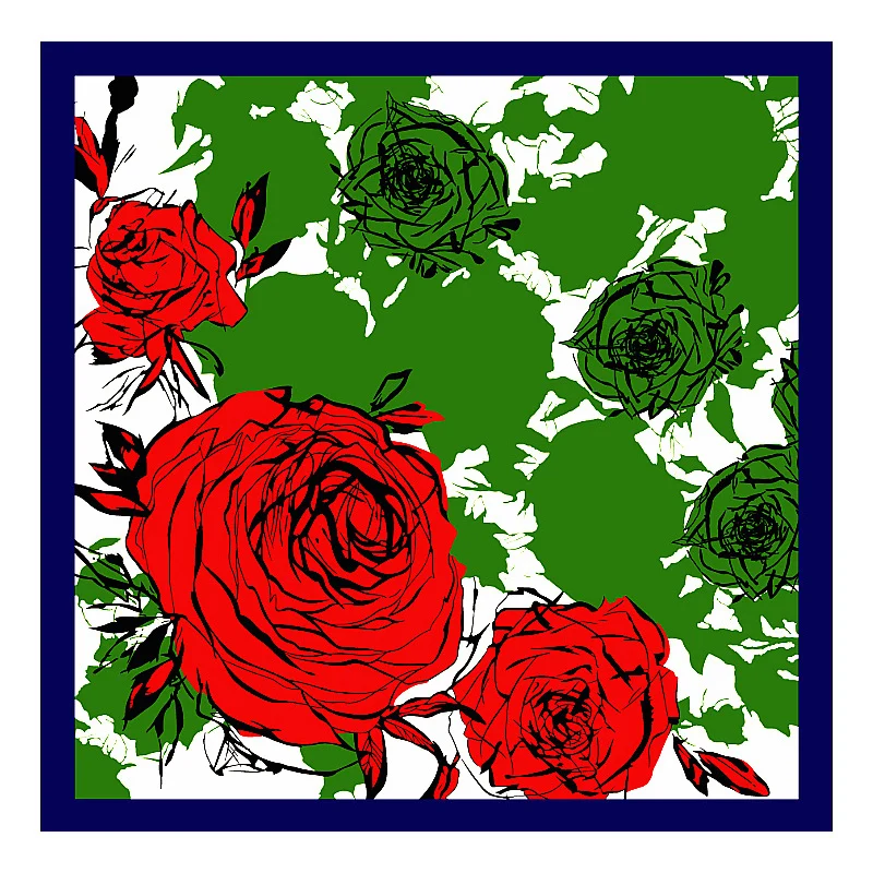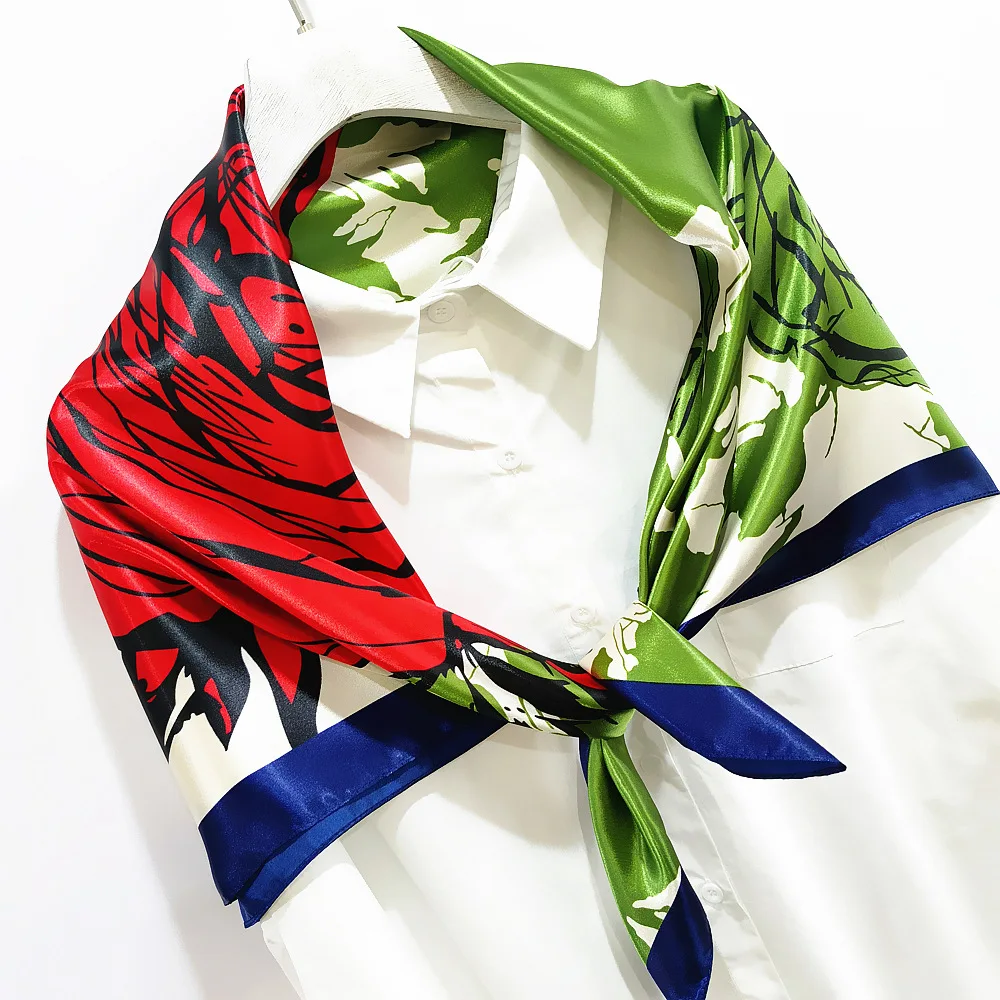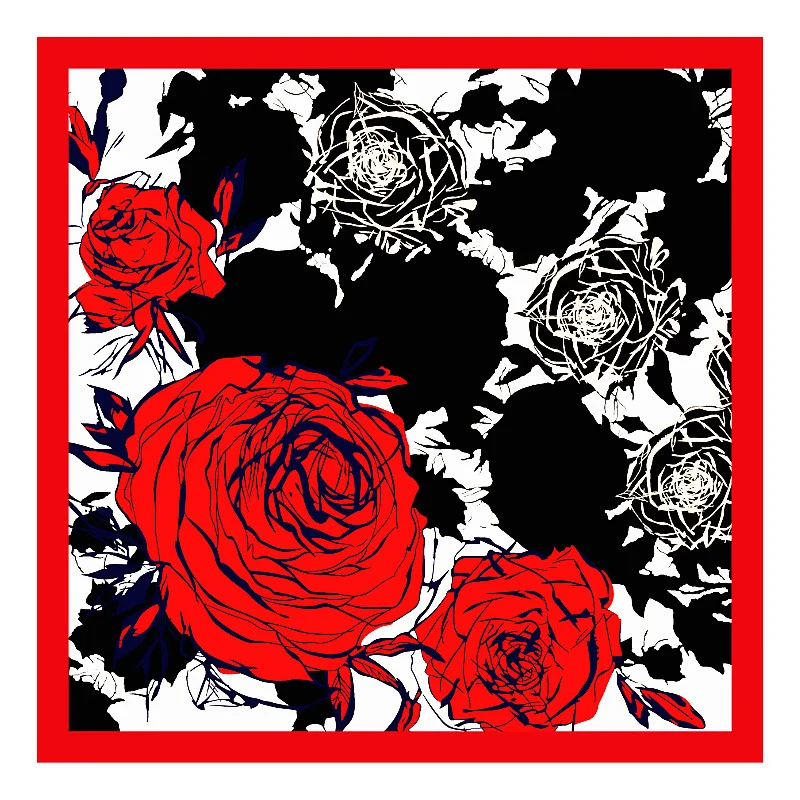 Модный Хиджаб Женский шарф с принтом розы Шелковые атласные красные шарфы платок 90*90 см квадратный шейный платок шарфы-повязки для женщин