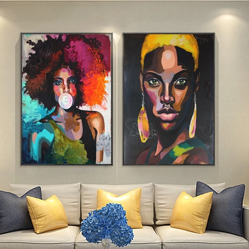 Африканское женское лицо сексуальные Золотые губы холст настенные к...