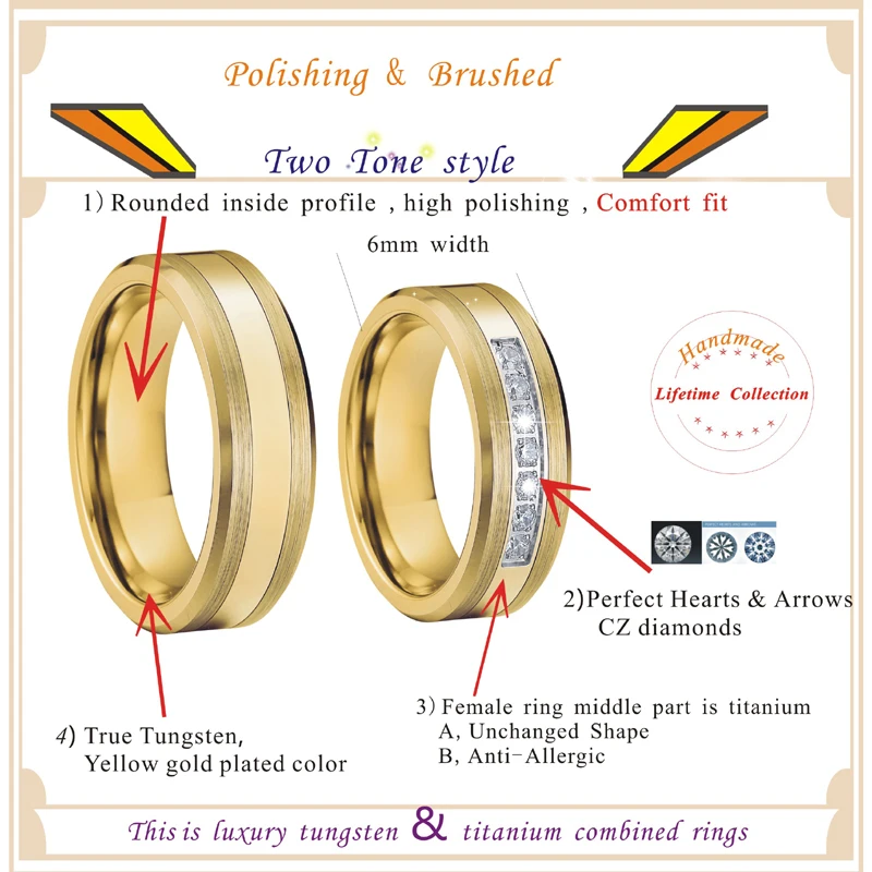 Вольфрамовое кольцо, обручальные кольца золотого цвета для влюбленн...