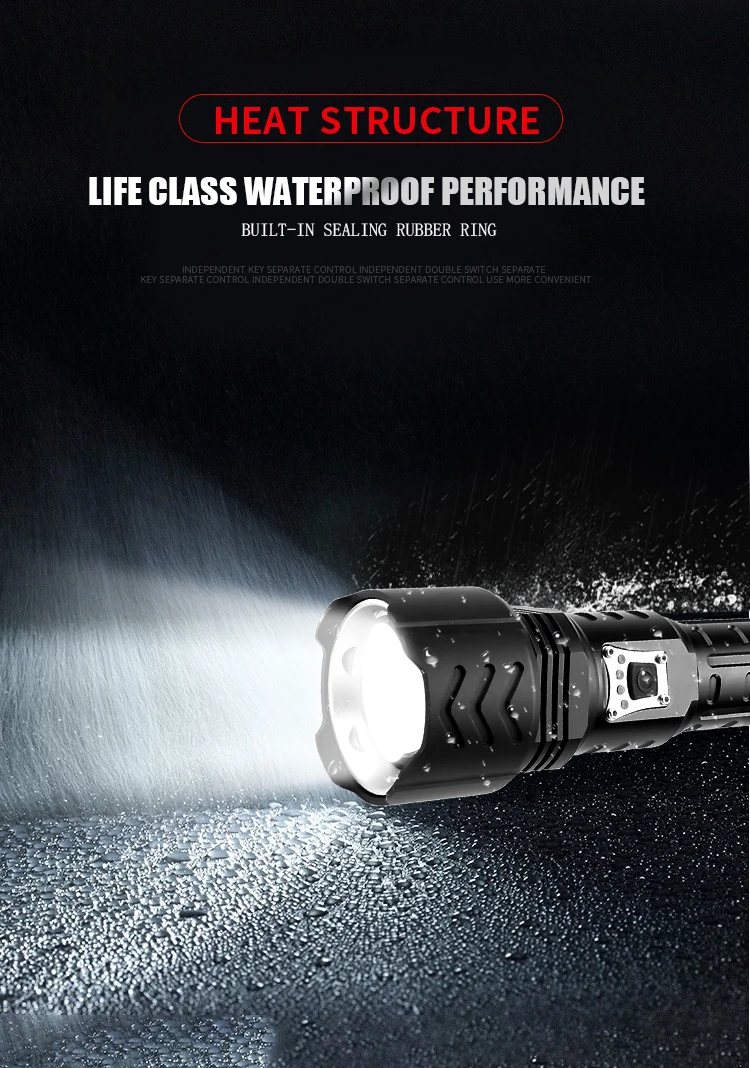 Powerful LED Flashlight2x18650 or 2x 26650 rechargeable battery