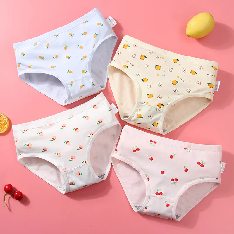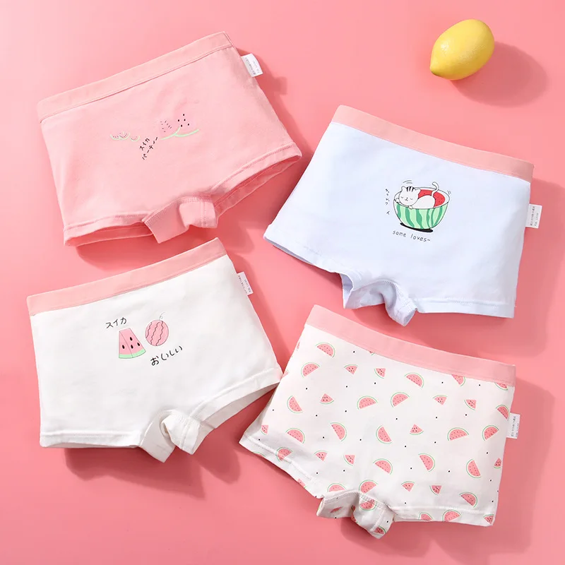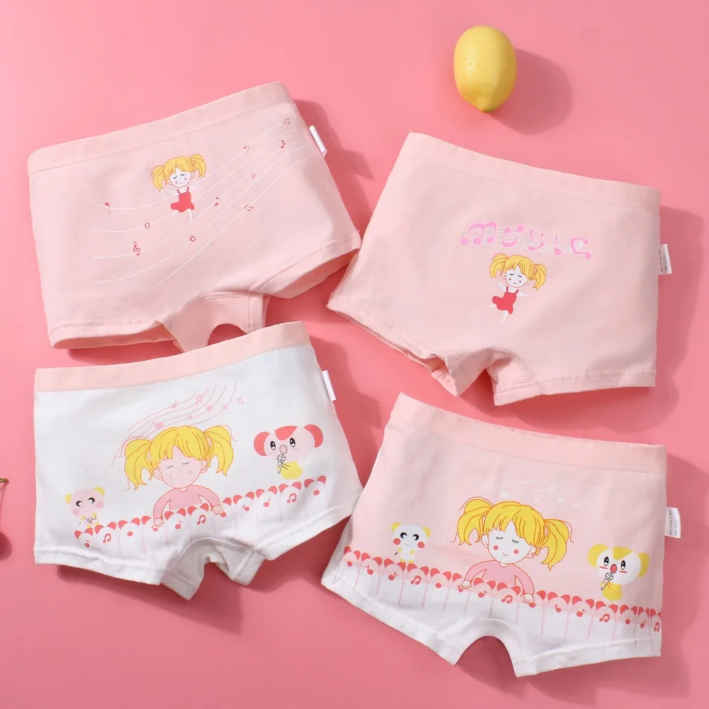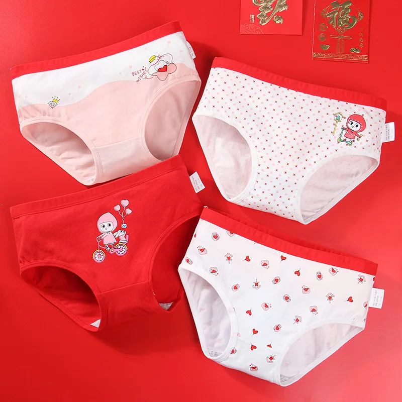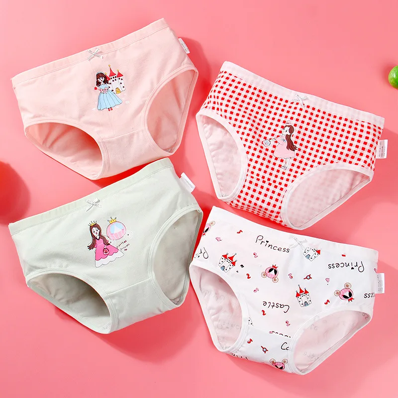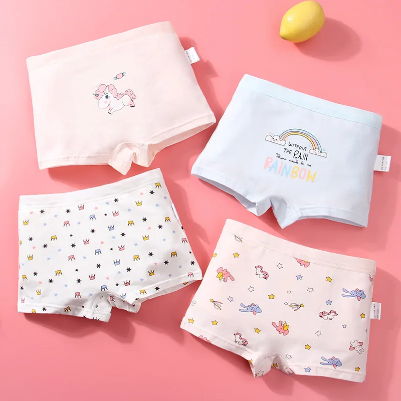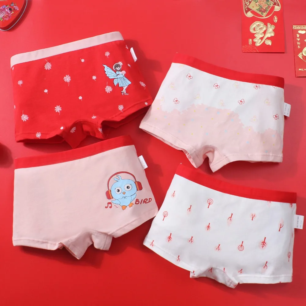 Хлопковые трусы для девочек, 4 шт.лот, с принтом, на новый год