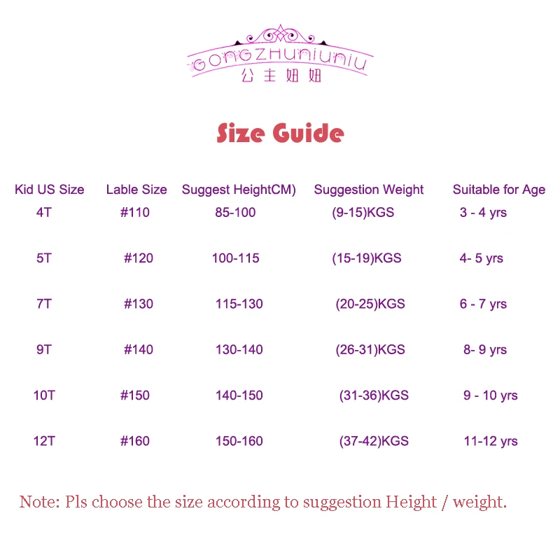 Детский размер США 7T (размер на этикетке #130): предполагаемый рост 115-130, рекомендуемый вес 20-25Кг,