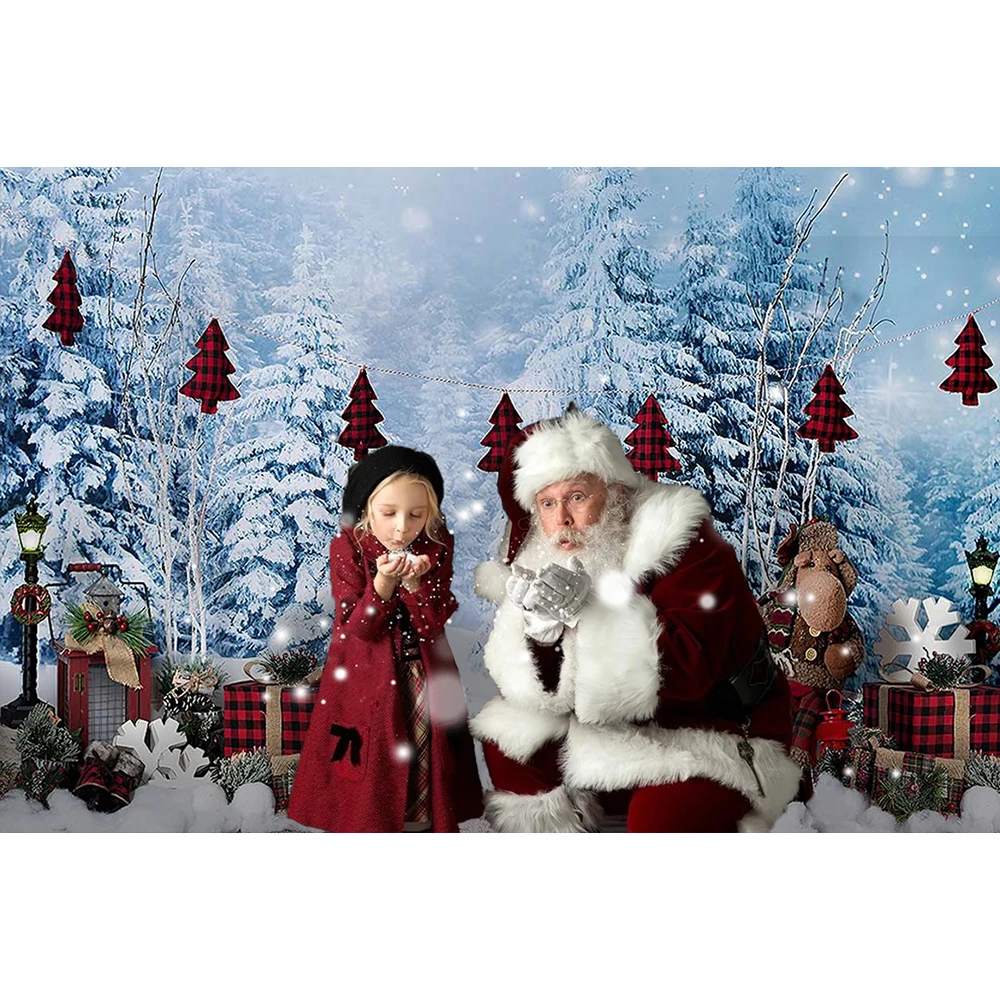 Фон для фотосъемки детей с изображением снега деревьев Рождества пр...