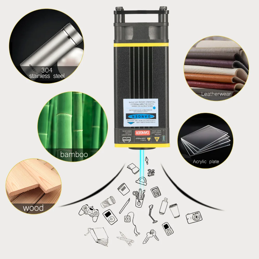 40 Вт усовершенствованный синий лазерный модуль с более низкой потерей и высокой точностью, который предназначен как для 3D-принтера, так и для станка с ЧПУ. С 448-462нм длиной волны, это в 6-7 раз быстрее и в 3-4 раза точность, чем традиционный лазерный модуль. Есть 5 мощных лазерных modual на выбор, они могут гравировать и резать различные материалы.