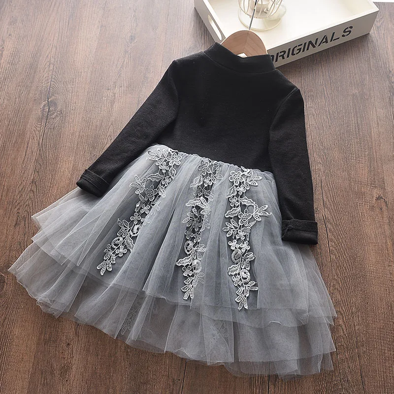 Платья принцессы для маленьких девочек, Осенняя детская одежда, повседневная школьная одежда, платье для маленьких девочек с длинным рукавом, черная модная детская одежда