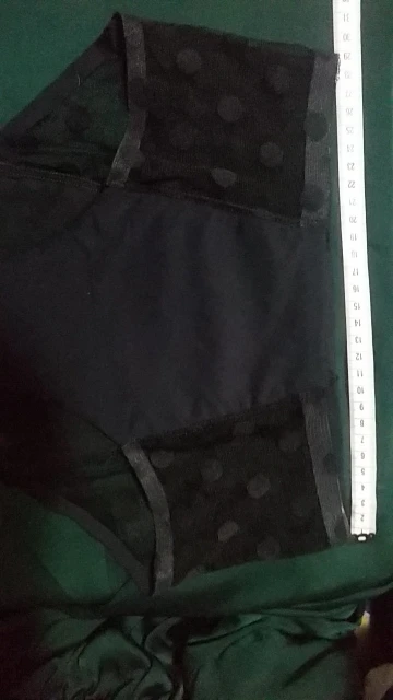 я в замешательстве. это эм... ну как эротический памперс) вроде и сеточка, и чёрное, и горошек, а весь перед и зад толщиной с прокладку с гелем, шуршит полиэтиленом внутри. тяжеленькие.многослойные: внутри слой из ХБ, потом что то типа гелевого как у прокладок, судя по весу, полиэтилен и наружная ткань. после стирки слои немного смещаются и пузырятся - явно надолго не хватит этих трусов. как вариант на каждый день не очень, но на доп защиту от протекания сойдёт при использовании основных средств гигиены, если шуршание полиэтиленом от этих трусов и заметность на ощупь не смущает