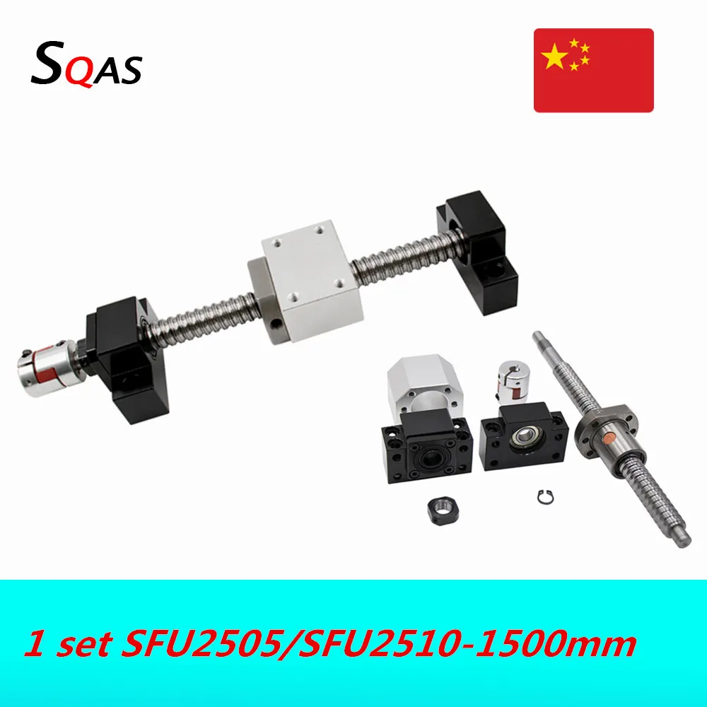 Комплект шариковых винтов SFU2505 SFU2510 1500 мм, конец шарикового винта, обработанный BK20 BF20 + одна гайка-3 + гайка держатель + муфта для ЧПУ