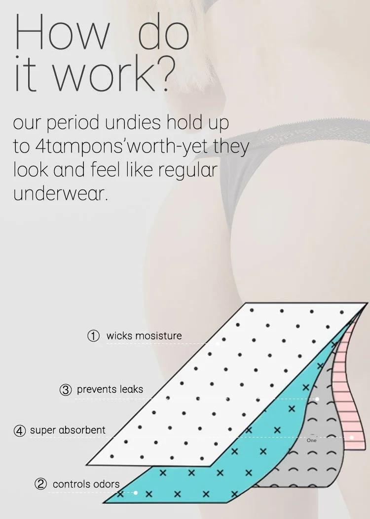 Трусики, как на картинке, я очень счастлив. Они супер удобные, высокие и очень хорошо впитываются. Без сомнения, обнаружение этого года-это менструальные трусики. Мои измерения 73 талии и 103 бедра, и они подходят мне идеально L