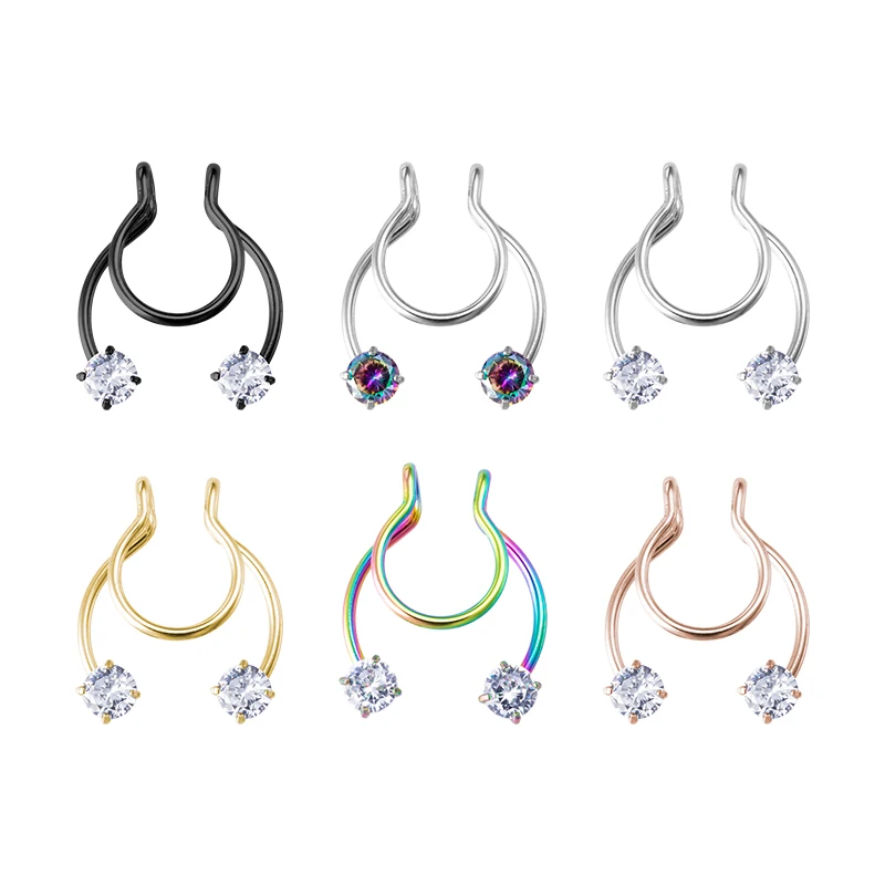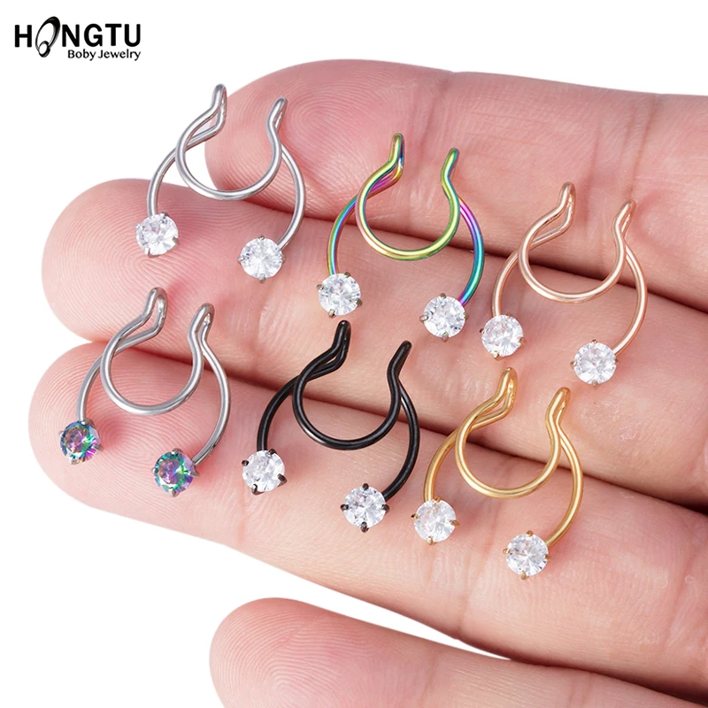 Кольцо для пирсинга носа из хирургической стали 316L, ювелирное украшение для имитации искусственного пирсинга носа с кубическим цирконием, перегородка, 18 г, 1-6 шт.