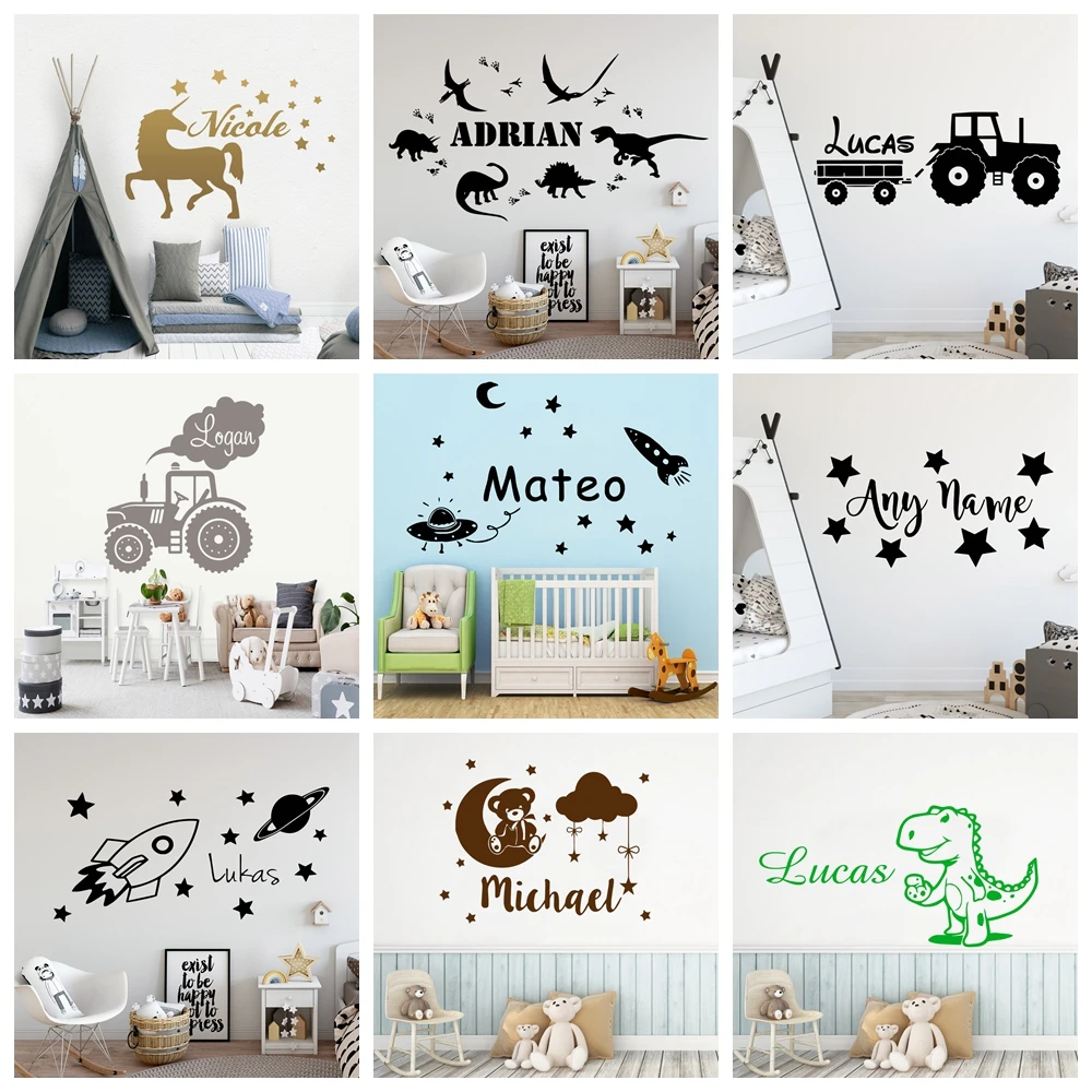 20 стилей, персонализированные милые наклейки с названием, наклейки на стену, виниловые наклейки для детской комнаты, украшение для спальни, декоративные обои