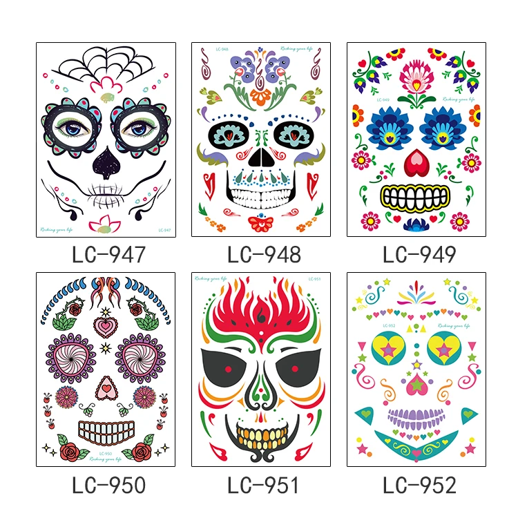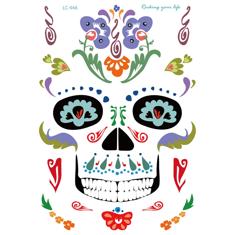 Наклейки для татуировок на лицо для Хэллоуина, временные наклейки на лицо с черепом и пауком, водостойкие декоративные татуировки, реквизит для детей и взрослых, татуировки на лицо