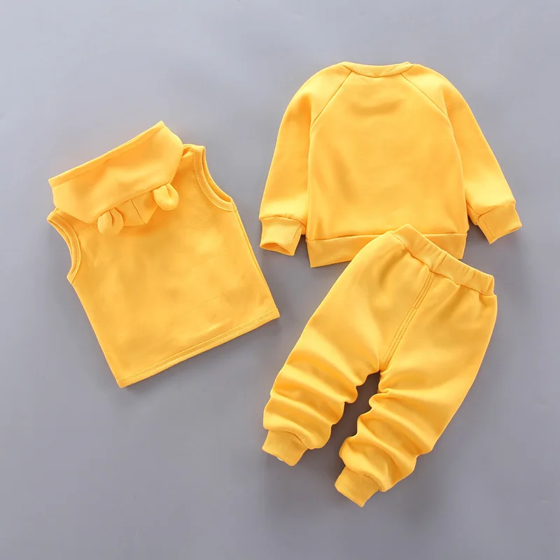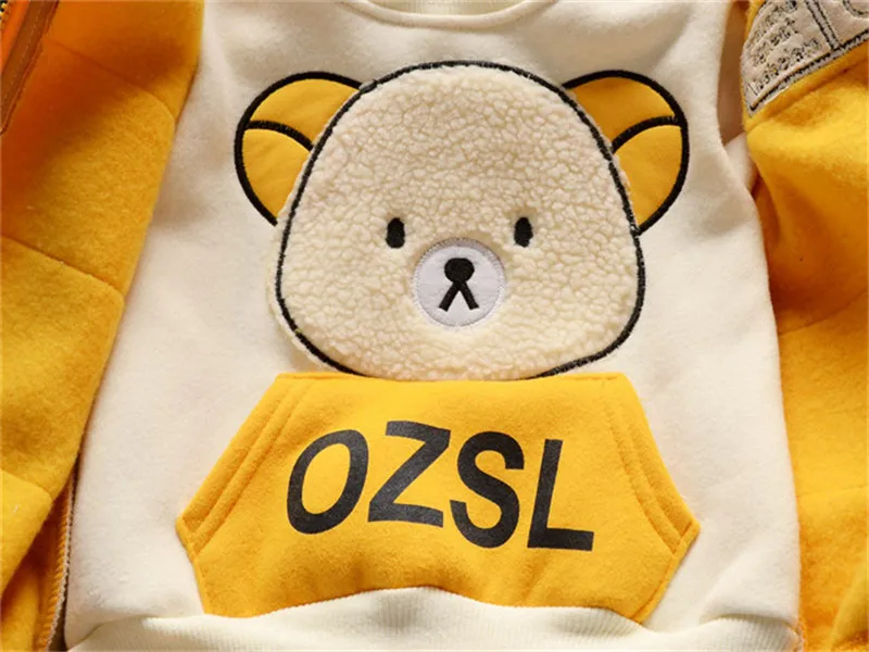 Одежда для маленьких мальчиков осень-зима плюс бархатный плотный теплый костюм для маленьких девочек мультяшный Повседневный свитер с капюшоном Детский костюм из трех предметов