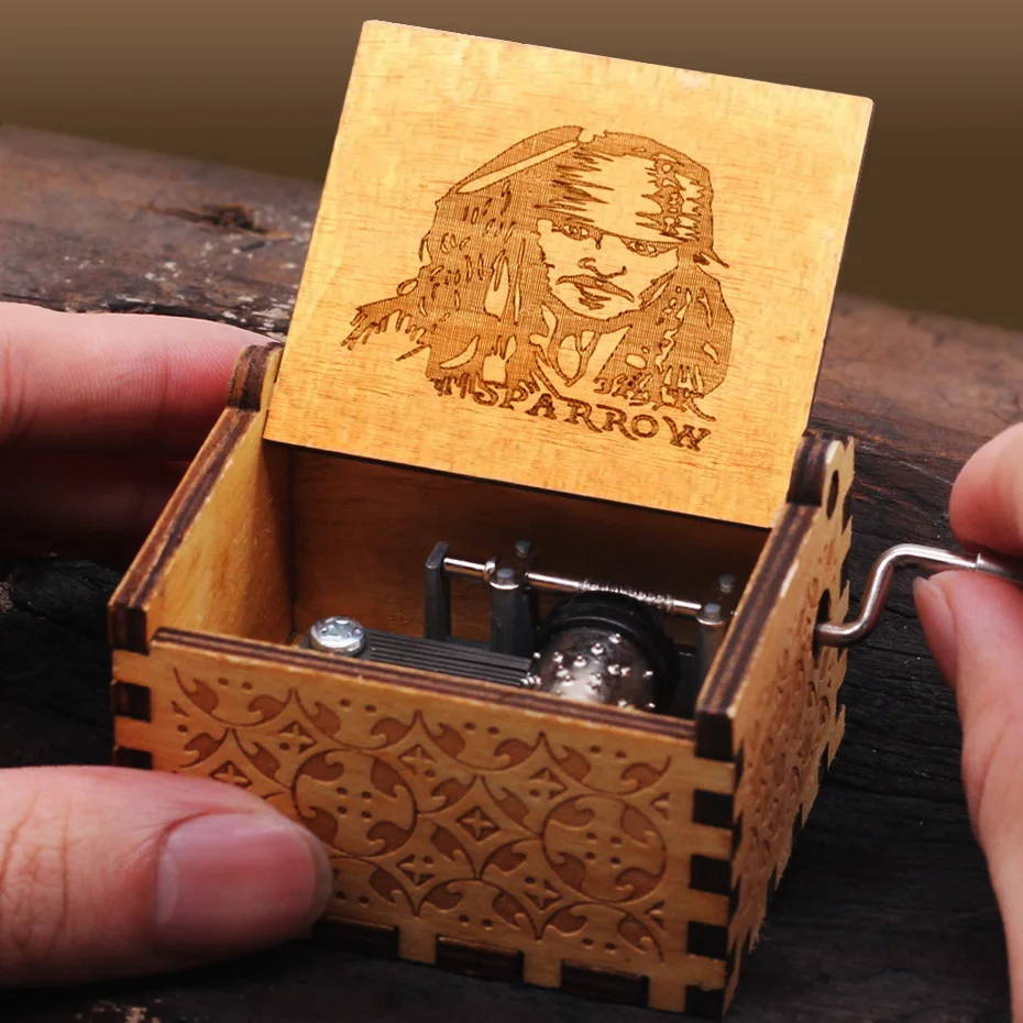 Музыкальная шкатулка Jack Sparrow деревянная ручной работы из пират...