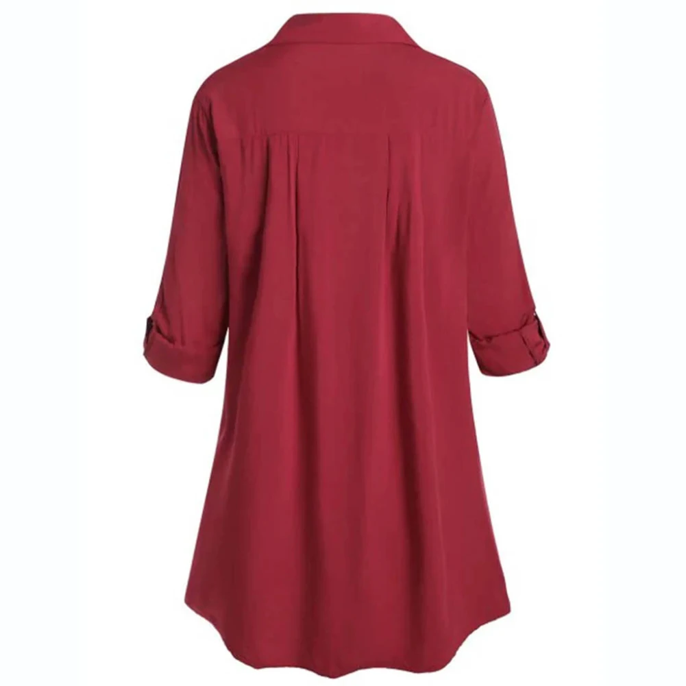 Рубашка женская однотонная с отложным воротником, на пуговицах, 2022