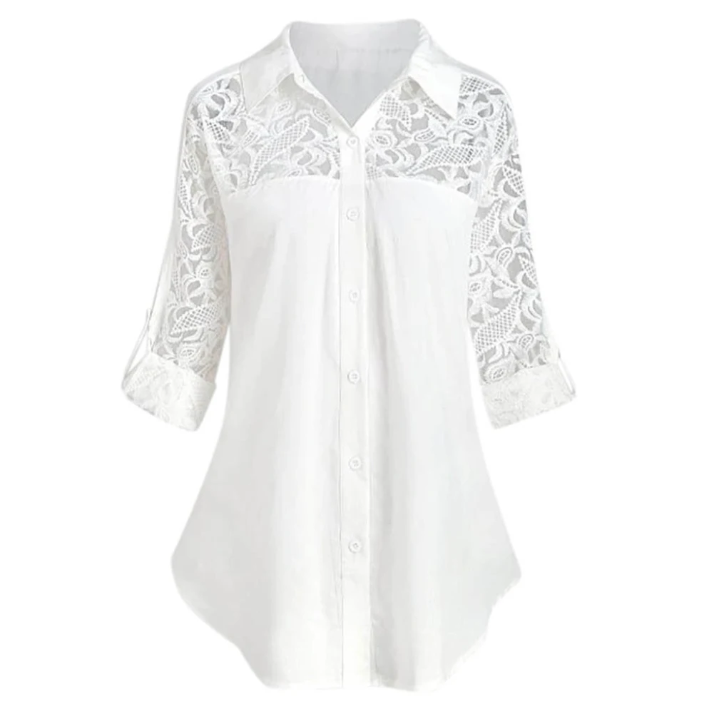 Женская Повседневная Однотонная рубашка с отложным воротником и кружевными пуговицами, женская одежда, рубашка для женщин 2020 ropa mujer