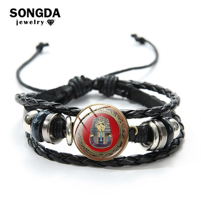 SONGDA Древнего Египта браслет Сфинкс Египетский скарабей глазом Винтаж узор Стекло кабошон, браслеты с брелоками для Для мужчин подарок