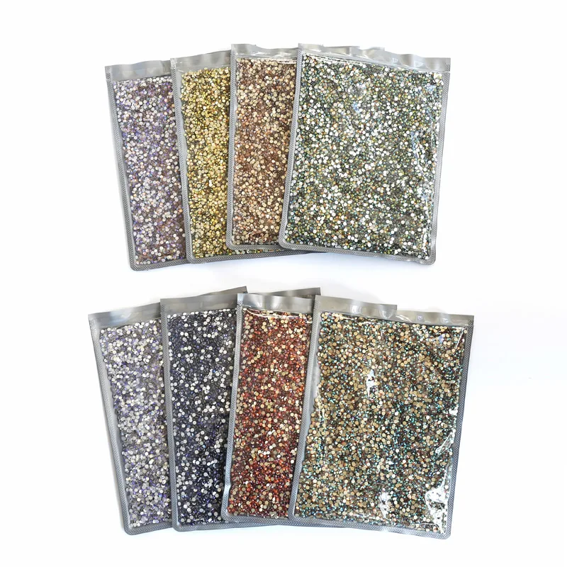 Оптовая продажа 14400 шт., новые цветные покрытия, Стразы без горячей фиксации оптом, большая упаковка, стразы с плоским дном
