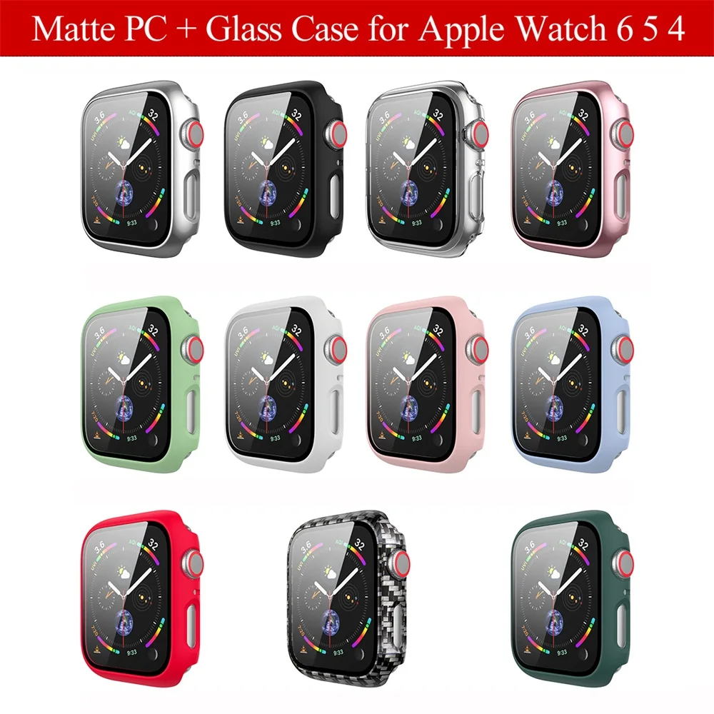 Матовый поликарбонатный чехол с полным покрытием, 1 шт., с закаленным стеклом, защита экрана, прозрачный чехол для Apple Watch серии 6, 5, 4, iWatch, 40 мм, 44 мм