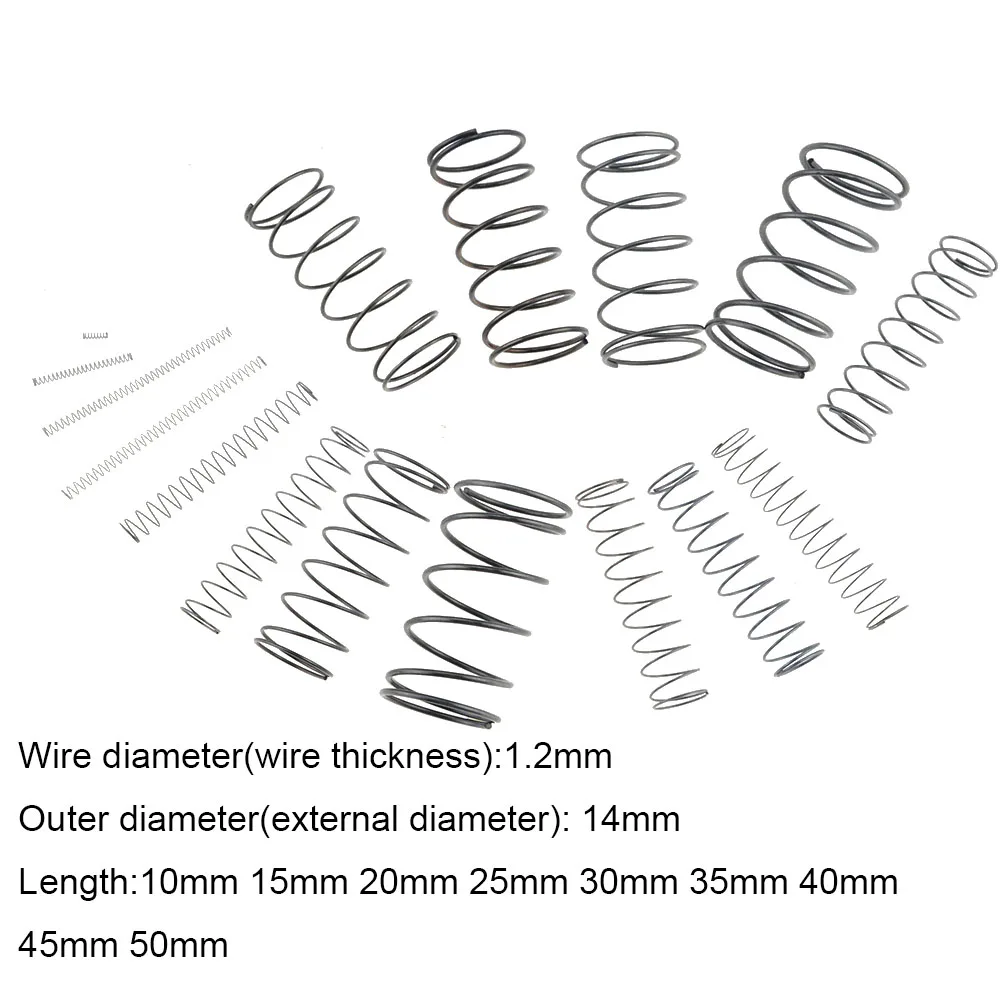 10 шт. 1,2*14*10-50 мм пружинная сталь маленький сжатие Механическая возвратная пружина давление пружина OD 14 мм x 14x10-50 мм