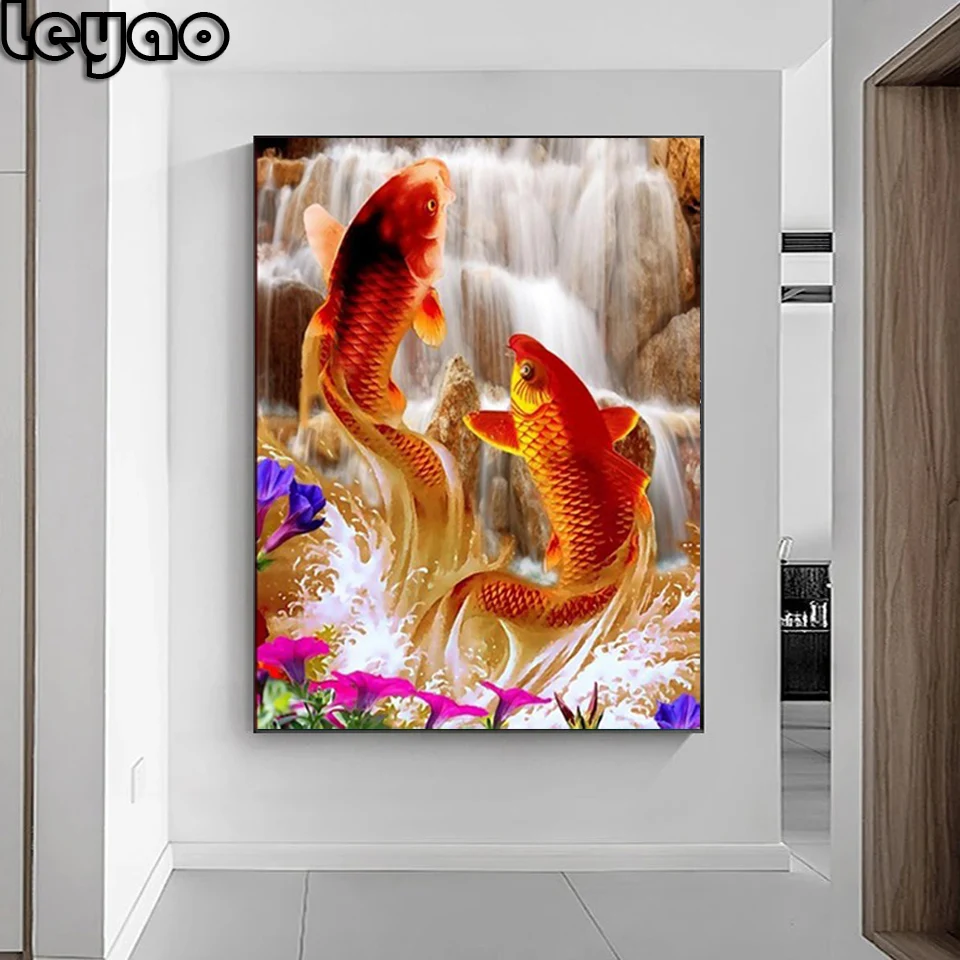 Алмазная живопись 5 d, полноразмерная Роскошная вышивка с изображением карпа, фэнтези-арта, рыбы, животных, украшение для дома, мозаика для творчества
