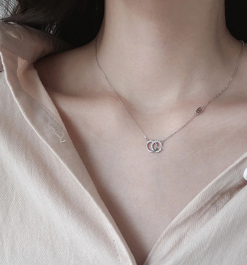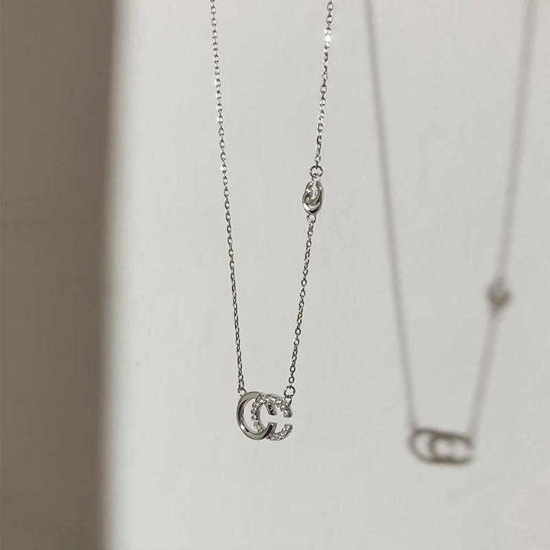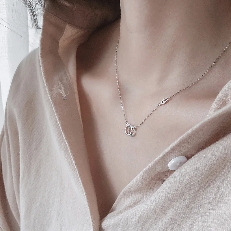 Ожерелье женское в японском стиле с надписью Double C, цепь до ключицы, простой и свежий аксессуар для лесной подвески для студентов в Корейском стиле