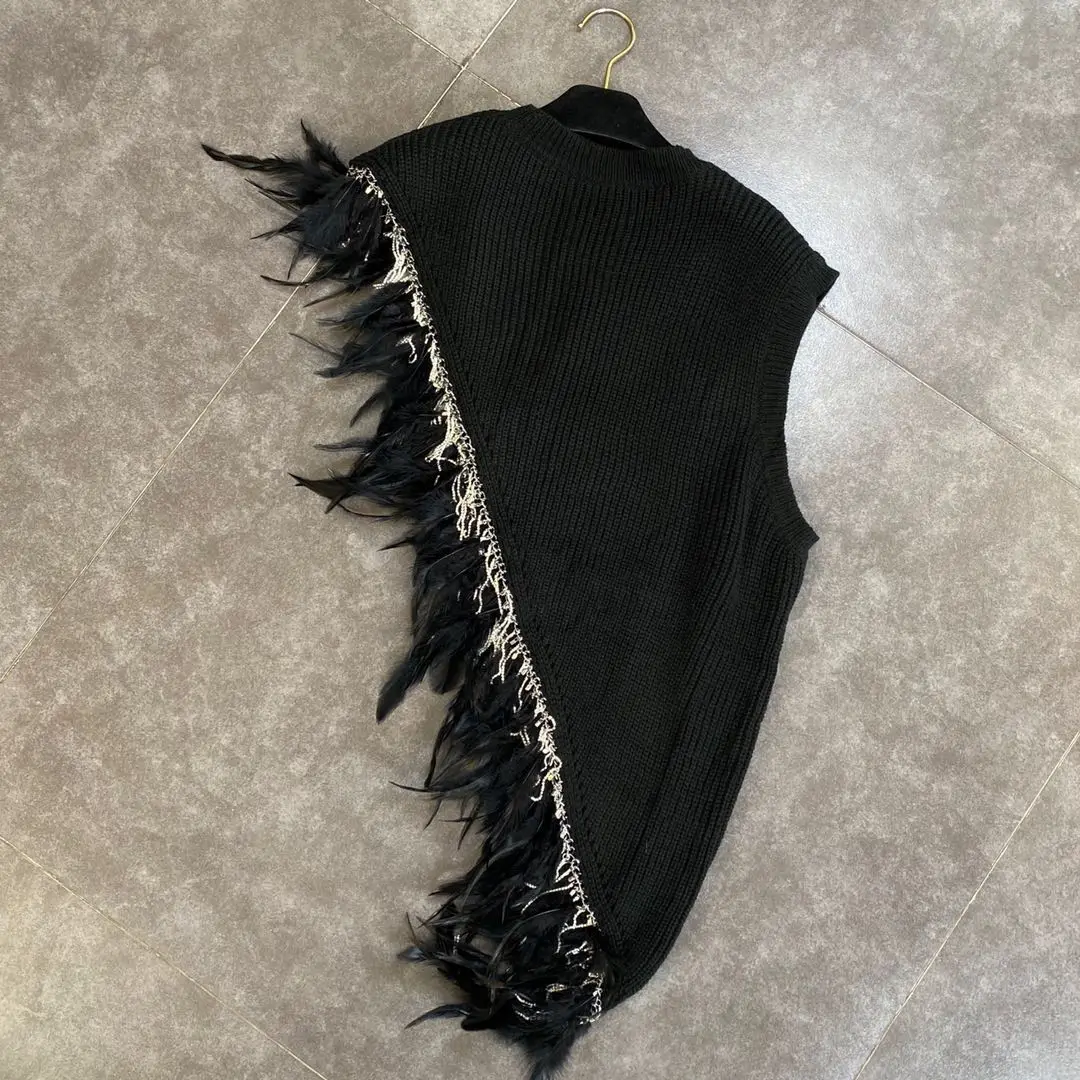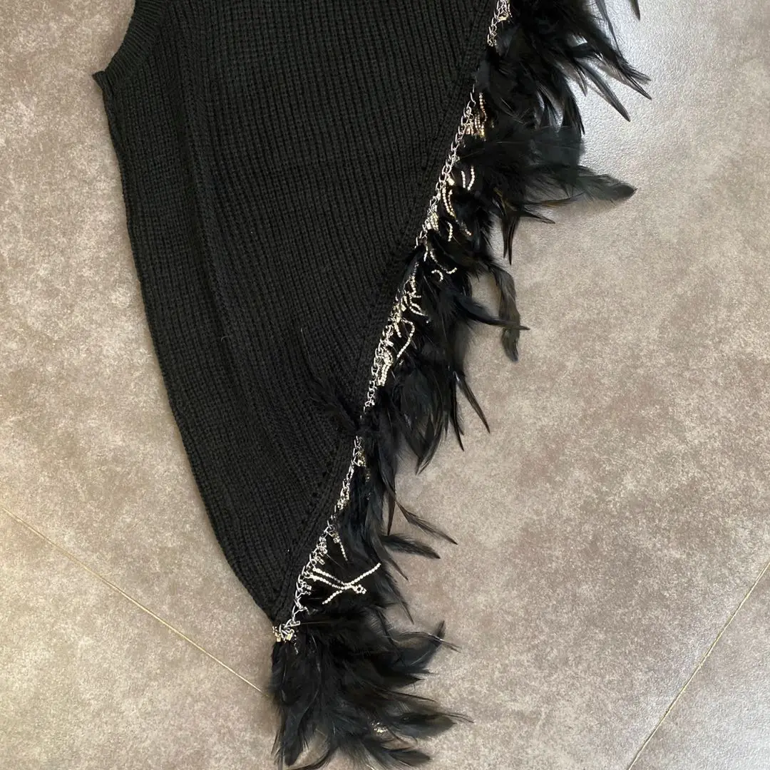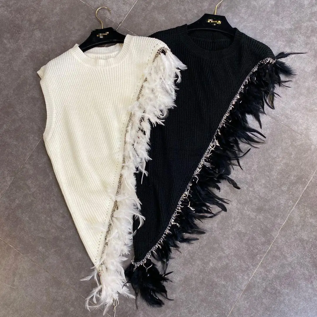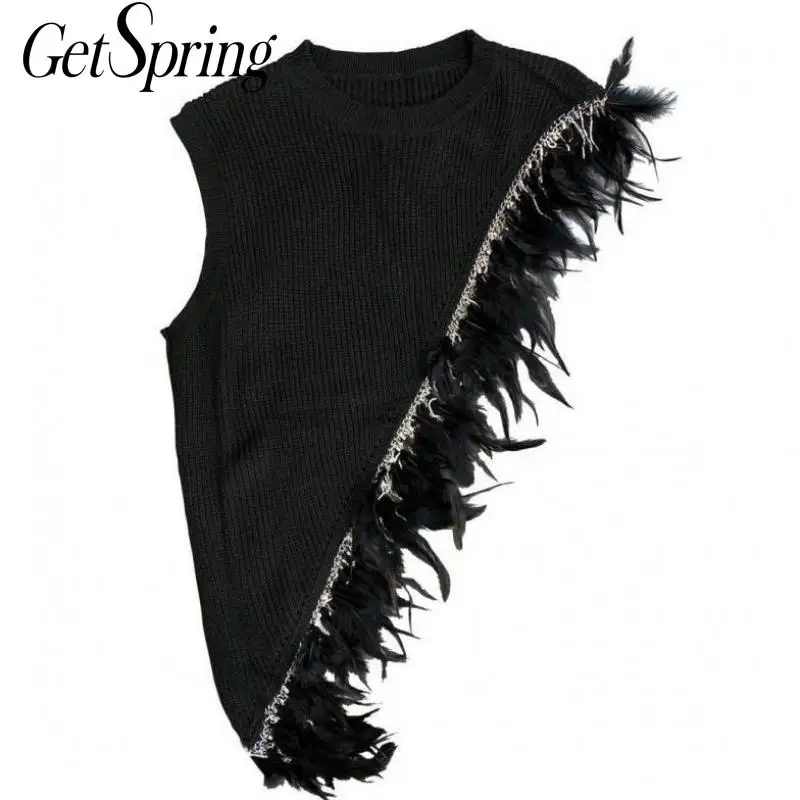 Жилет Getspring женский асимметричный, вязаный жилет в стиле пэчворк с перьями, черный, белый, на осень-зиму, 2020
