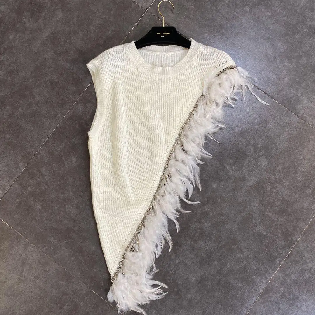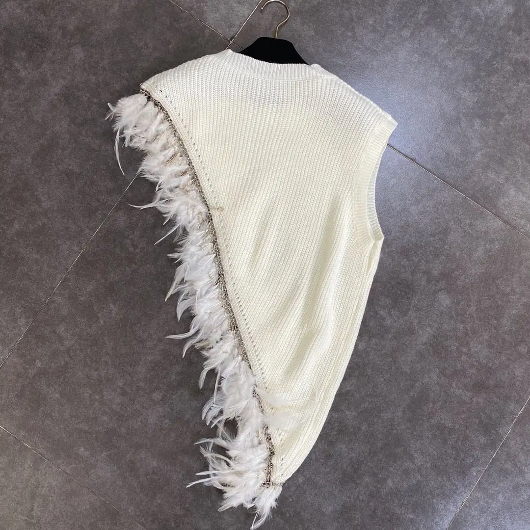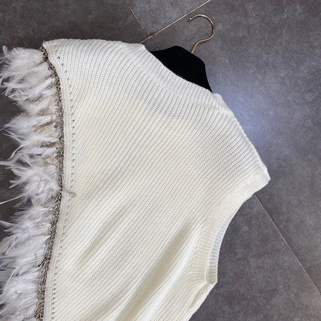 Жилет Getspring женский асимметричный, вязаный жилет в стиле пэчворк с перьями, черный, белый, на осень-зиму, 2020