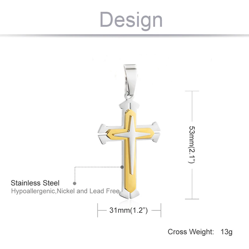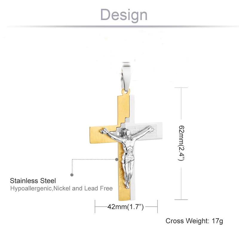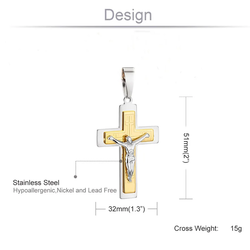 Религиозная подвеска-крест из нержавеющей стали для мужчин, подвеска с крестом Иисуса золотого и серебряного цвета, Ювелирное Украшение для молитвы