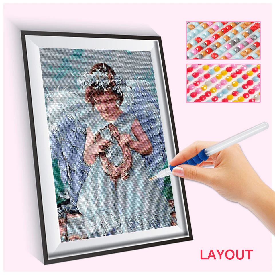 Алмазная мозаика EverShine, картина с портретом девушки из бисера, полная выкладка, крест с ангелами, вышивка, стразы