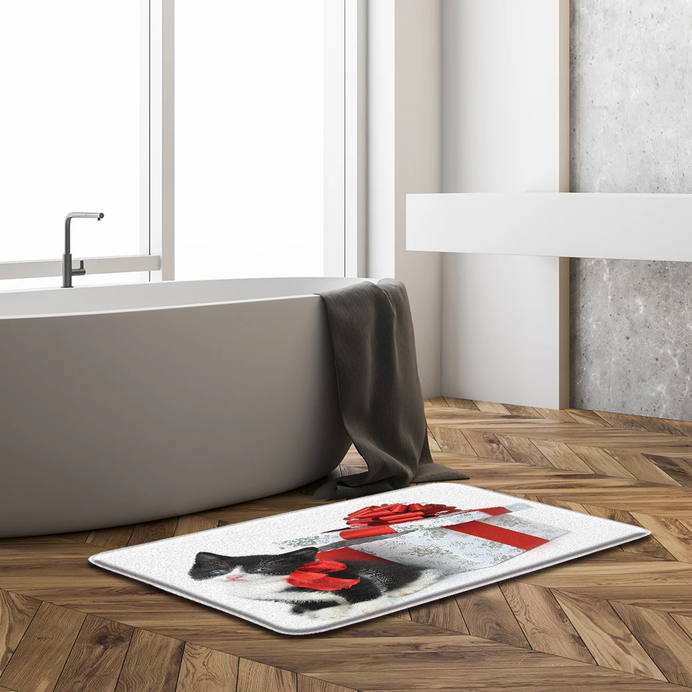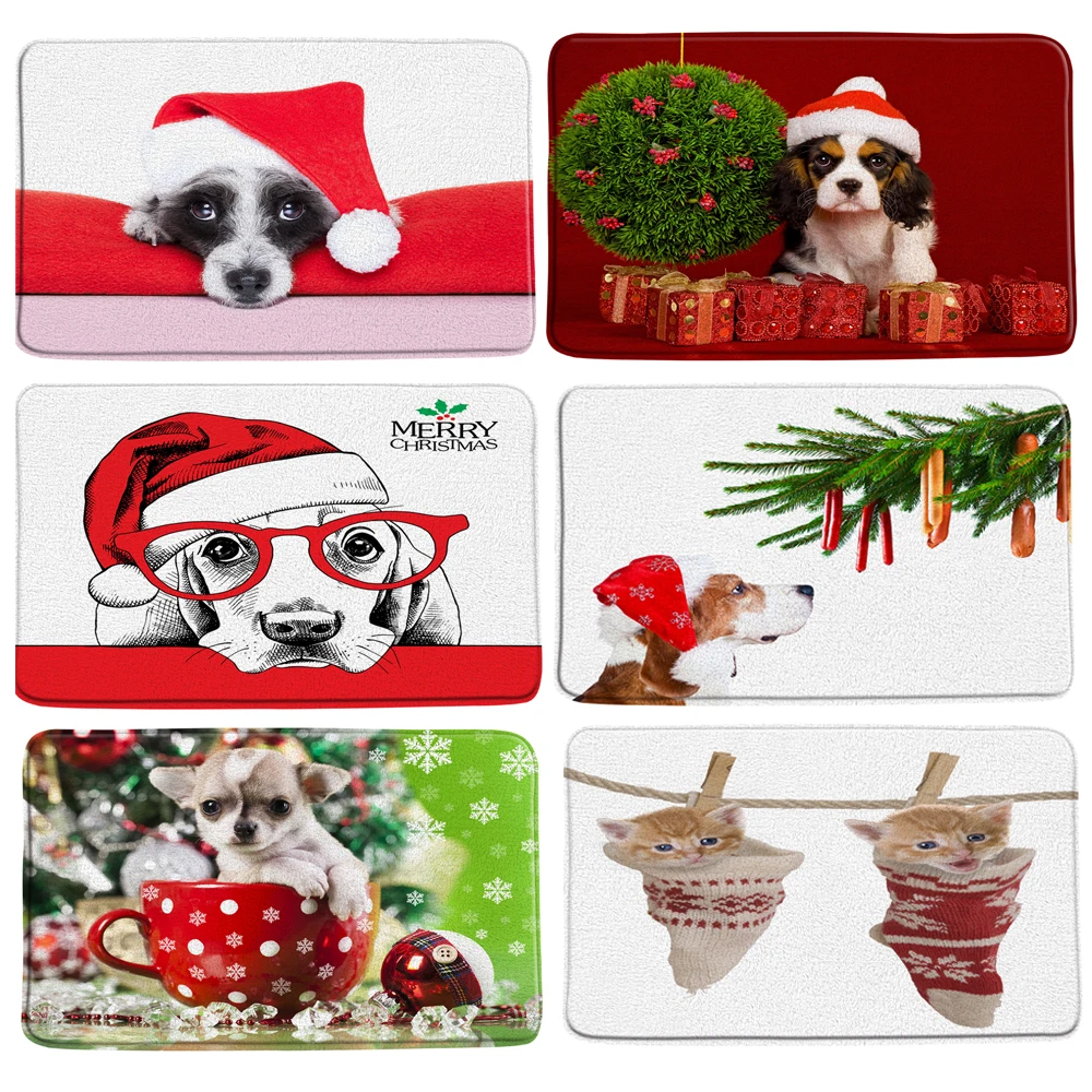 2021 Рождественский коврик для кота собаки Санта Клаус, Придверный коврик, Рождественский Декор для дома, Рождественский напольный нескользящий коврик, красный Рождественский Придверный коврик, новый год