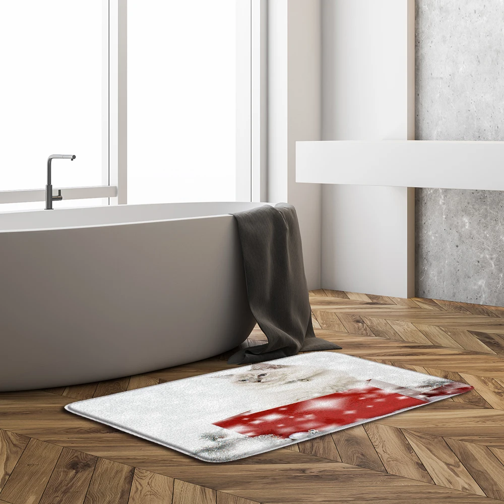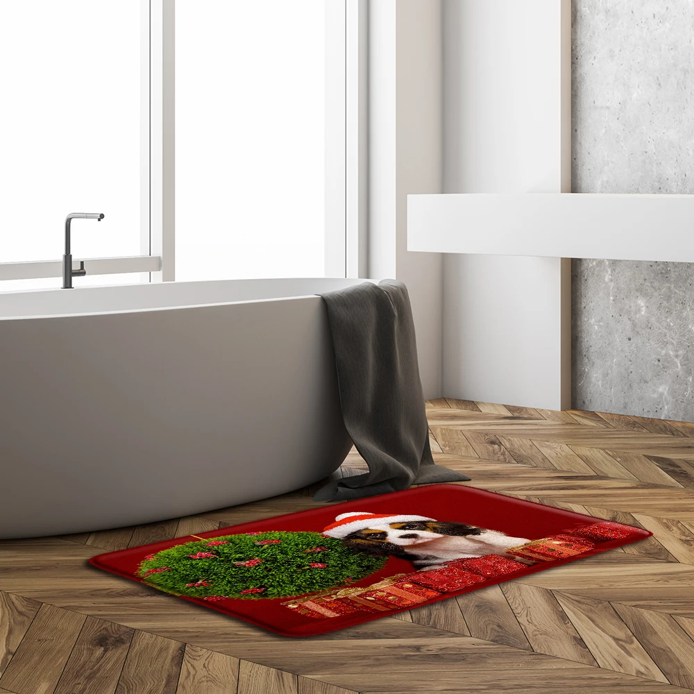 2021 Рождественский коврик для кота собаки Санта-Клауса, коврик для двери с рождественским декором, домашний Рождественский пол, нескользящий коврик, Красный Рождественский коврик на новый год