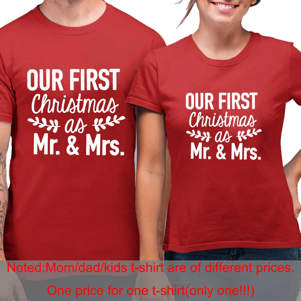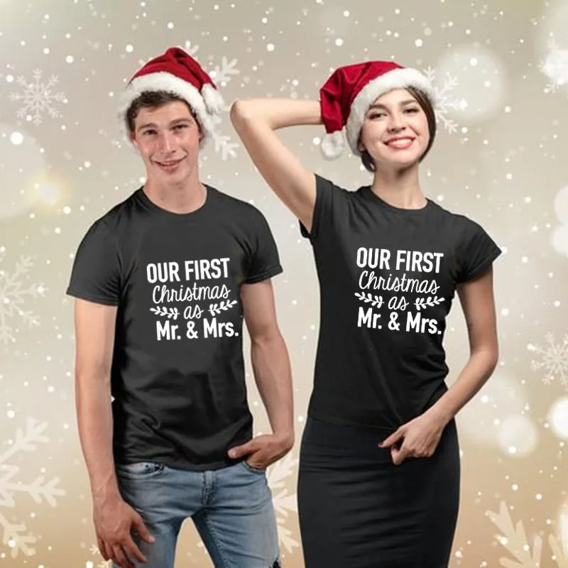 1 шт., первая Рождественская одинаковая футболка для влюбленных As Mr and Mrs, футболки с коротким рукавом, рождественские повседневные футболки, вечерние футболки, подарок 2020