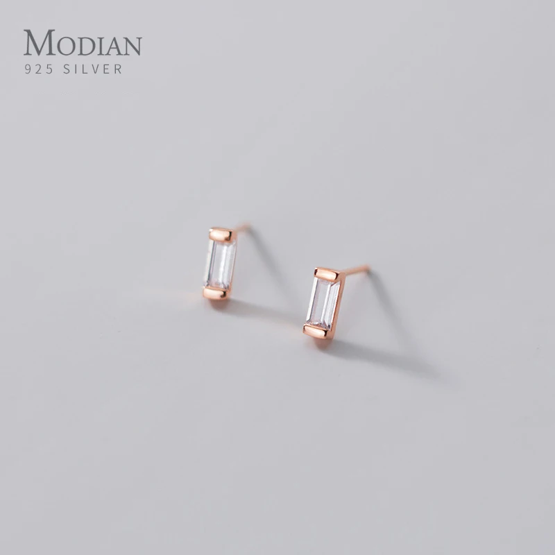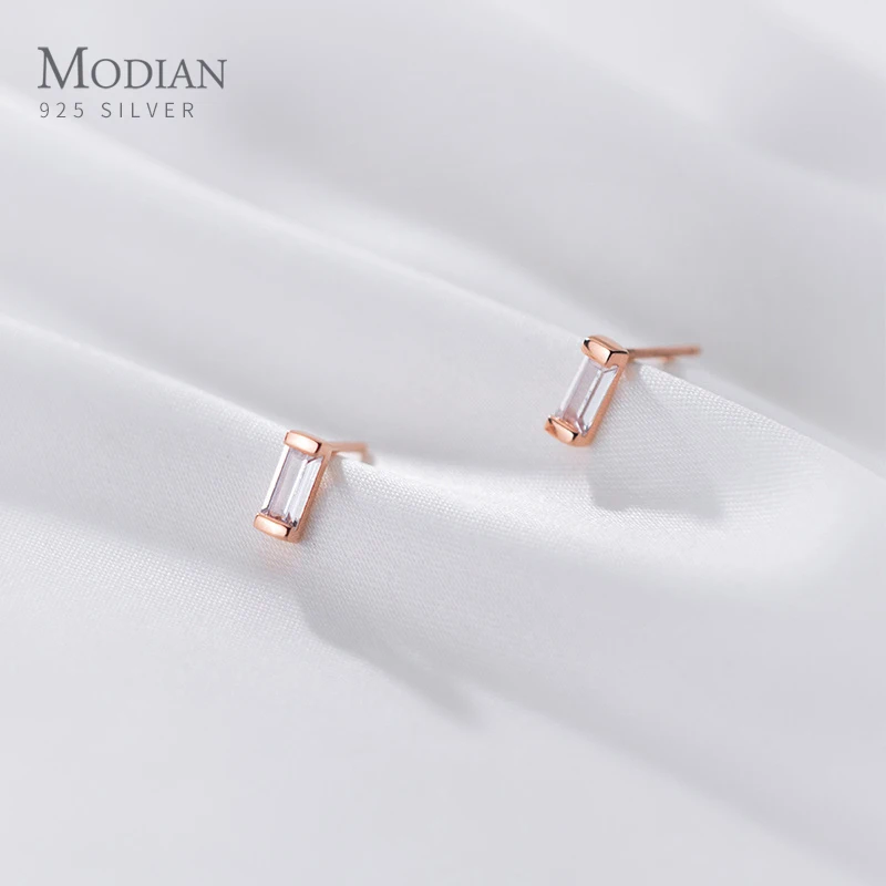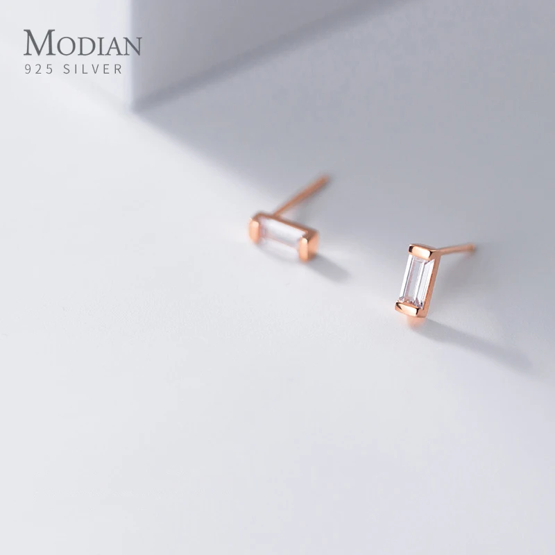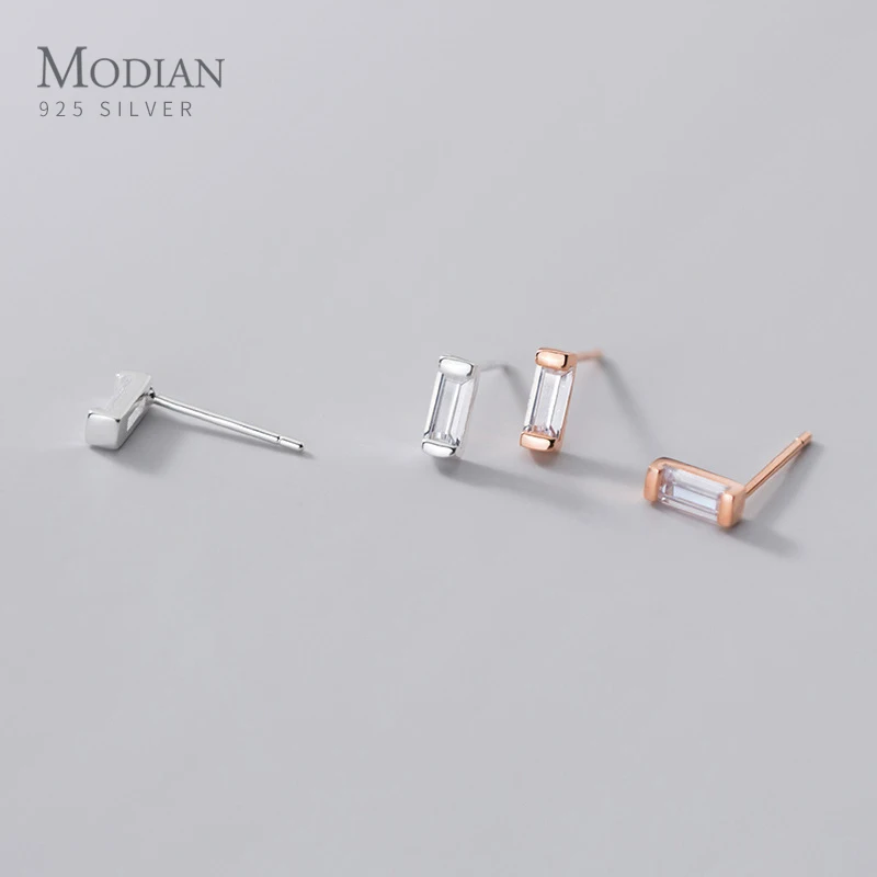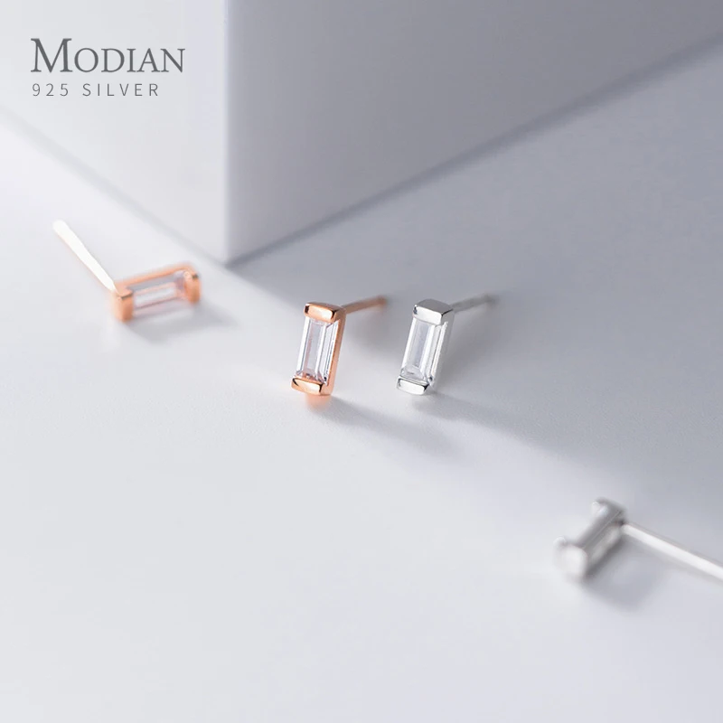 Женские серьги-гвоздики Modian, простые квадратные антиаллергенные серьги из 100% стерлингового серебра 925 пробы с цирконием, изящная бижутерия