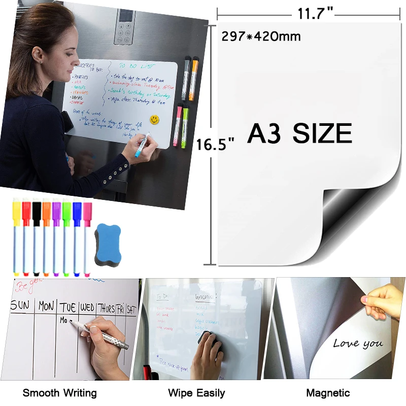 Магнитная мягкая белая доска Размера A3, сухое стирание, календарь, магнит на холодильник, белая доска, записная книжка, рисование, практика, запись, Настенная Наклейка
