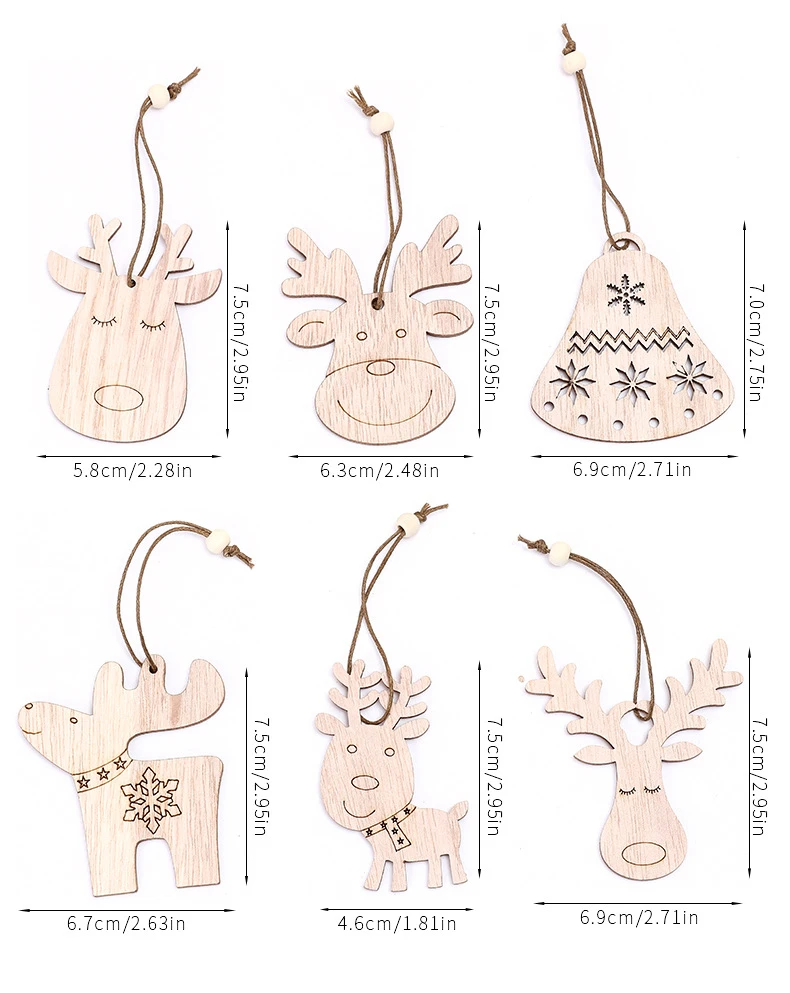 12 шт., рождественские деревянные подвески, Винтажные Украшения с изображением ангела, оленя, Рождественская елка, висячие украшения, вечерние украшения для детей, товары для дома