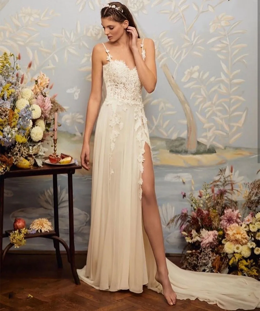Богемные Свадебные платья 2021 милое напольное платье с разрезом сб...