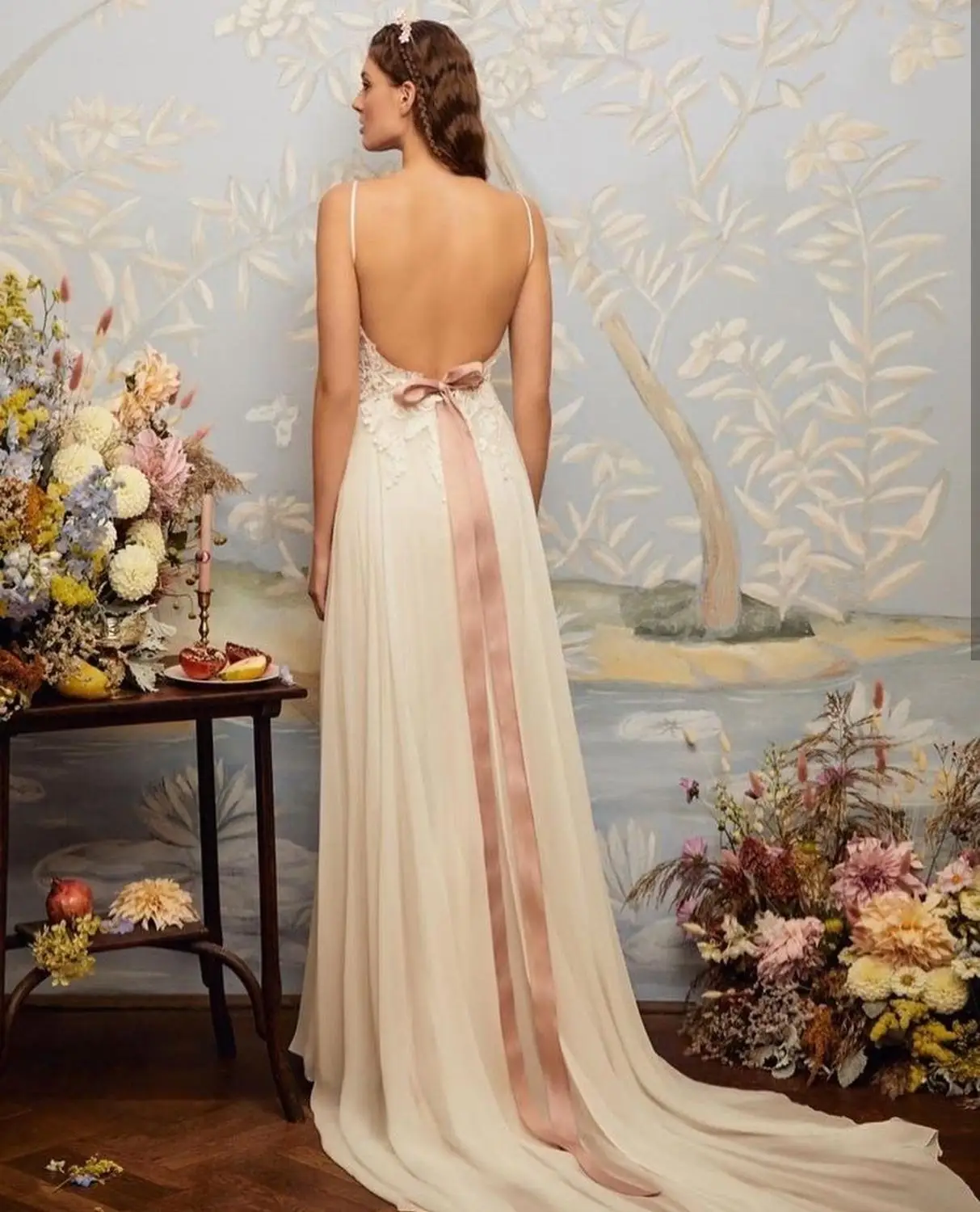 Шифоновое свадебное платье А-силуэта в стиле Бохо