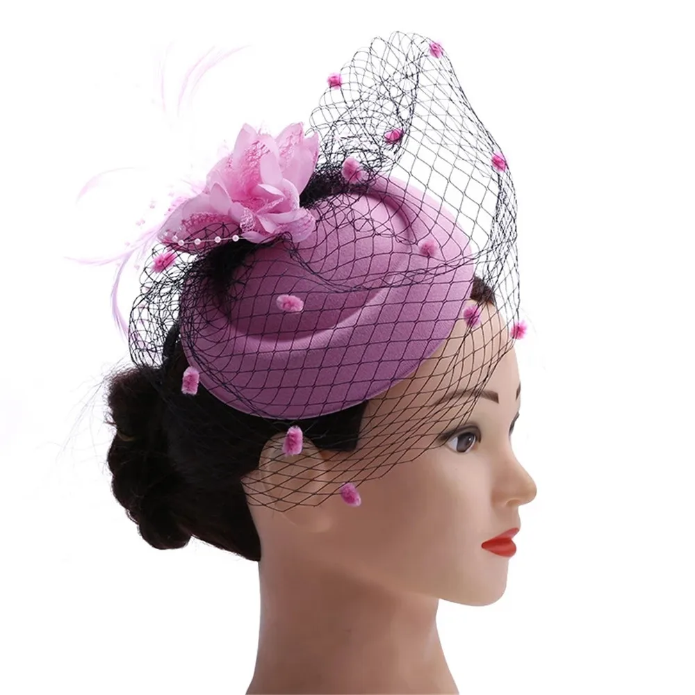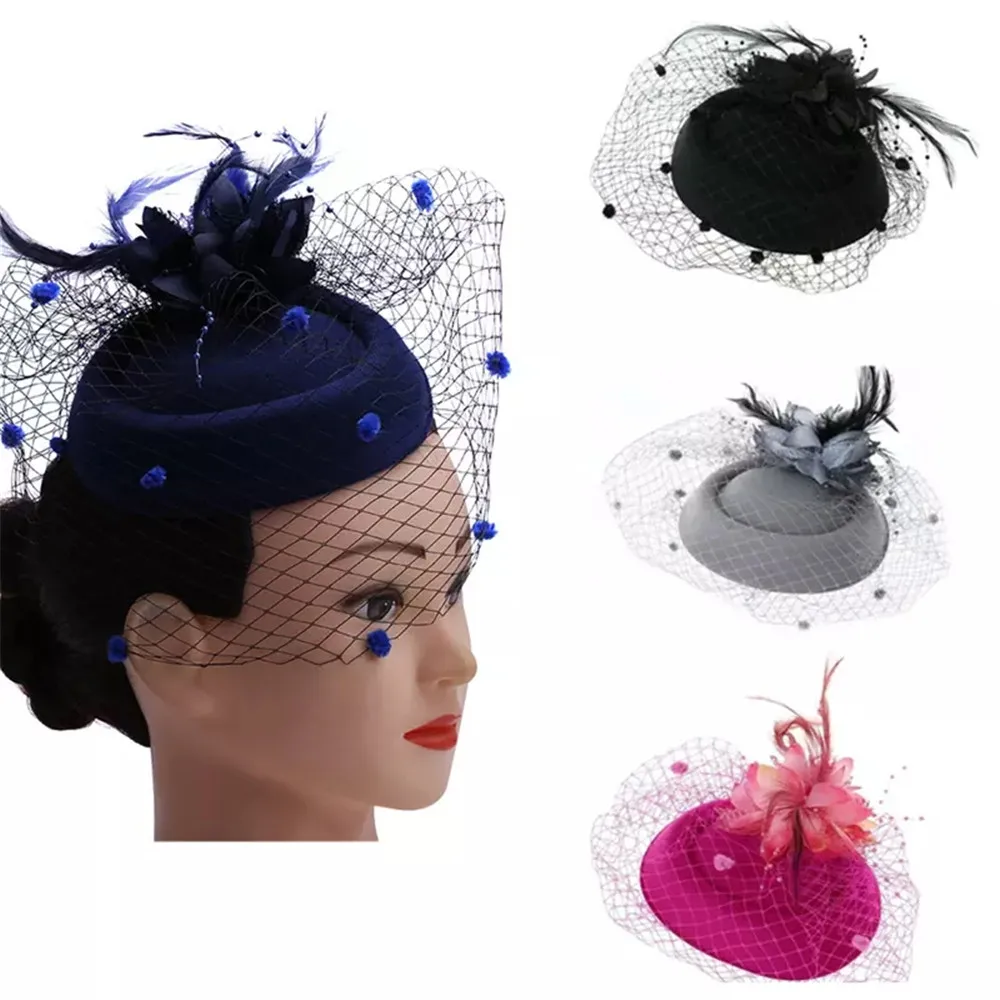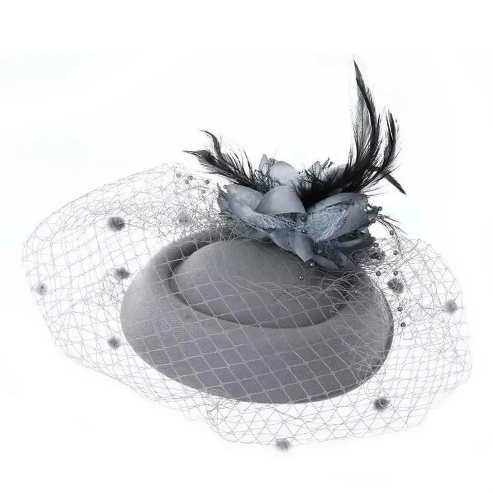 Заколка для волос женская, с вуалью, однотонная, в стиле ретро