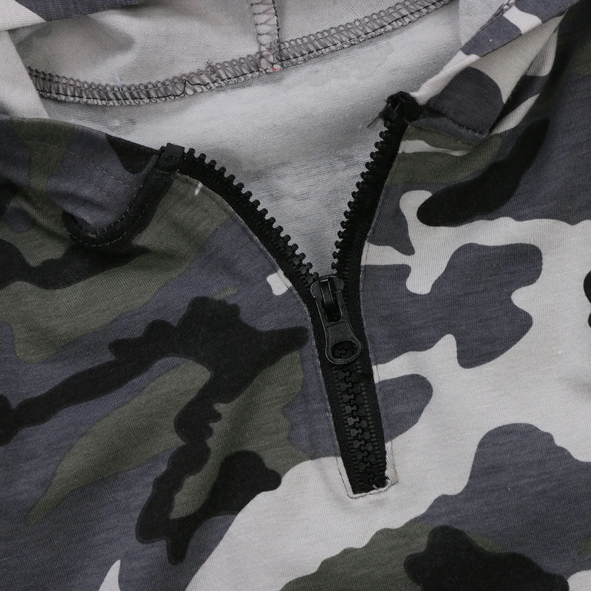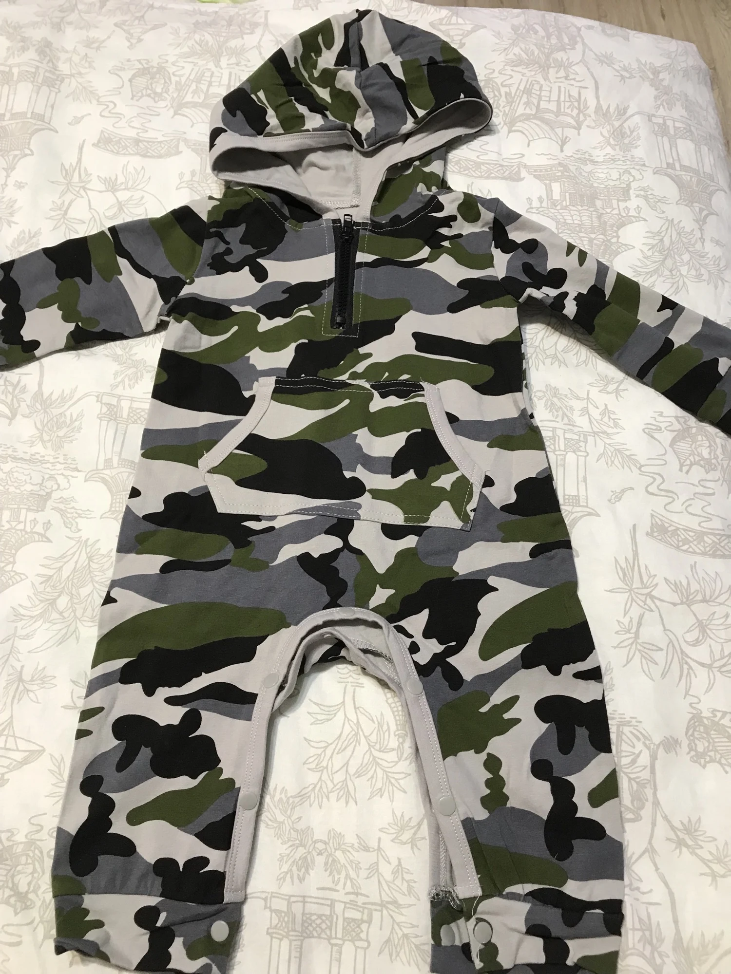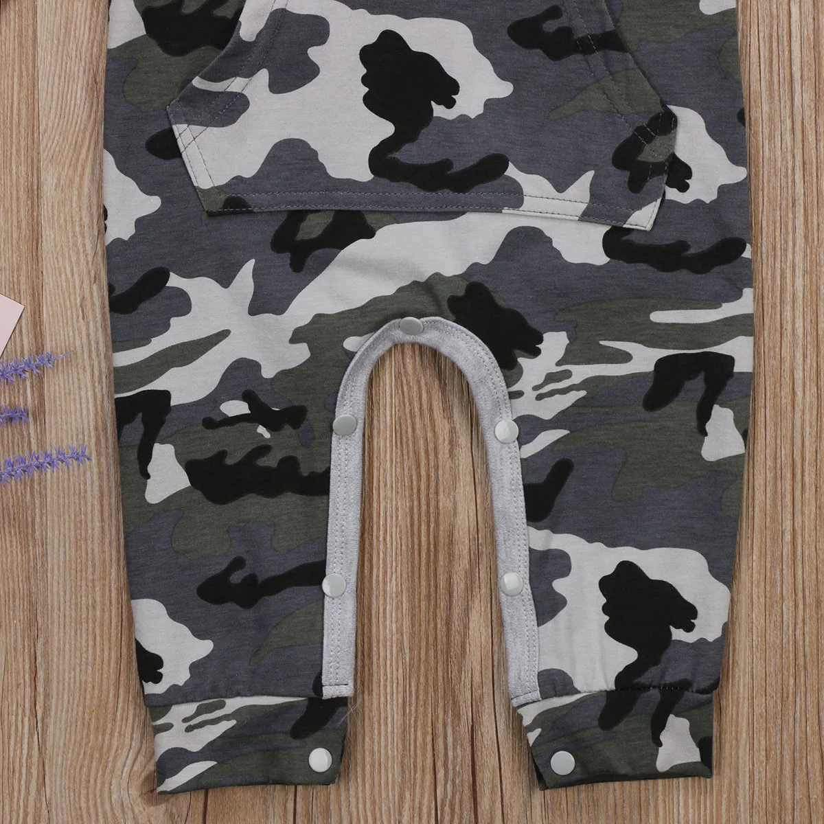 Комбинезон детский Камуфляжный с капюшоном, длинным рукавом и карманами на животе