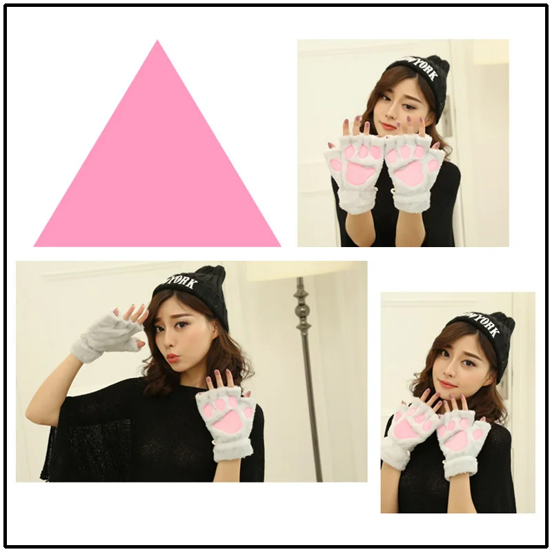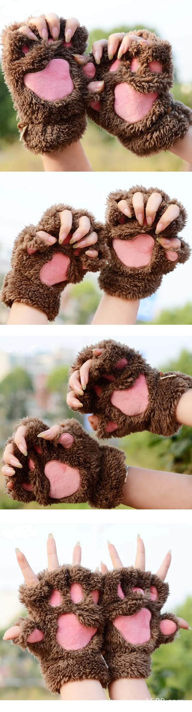 Перчатки с кошачьими лапами, зимние перчатки без пальцев с милыми мультяшными котами и девушками, перчатки с толстыми пушистыми лапами медведя, перчатки без пальцев G22
