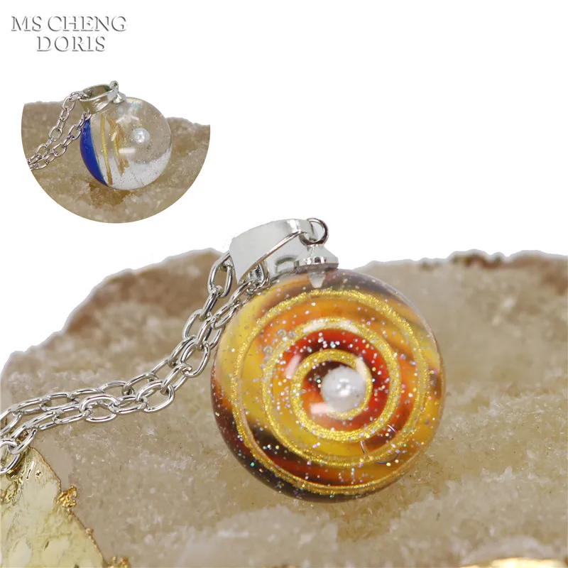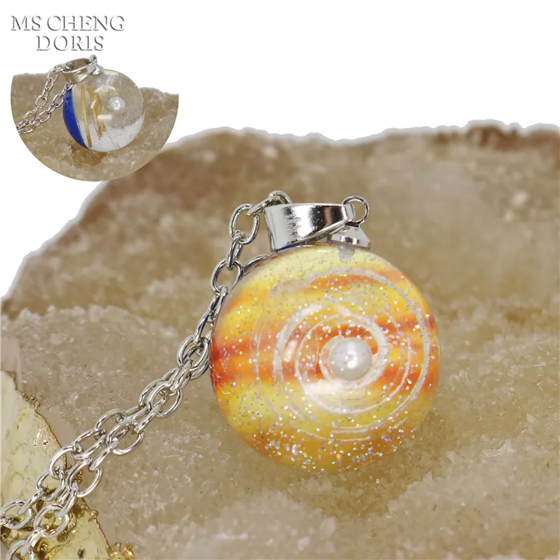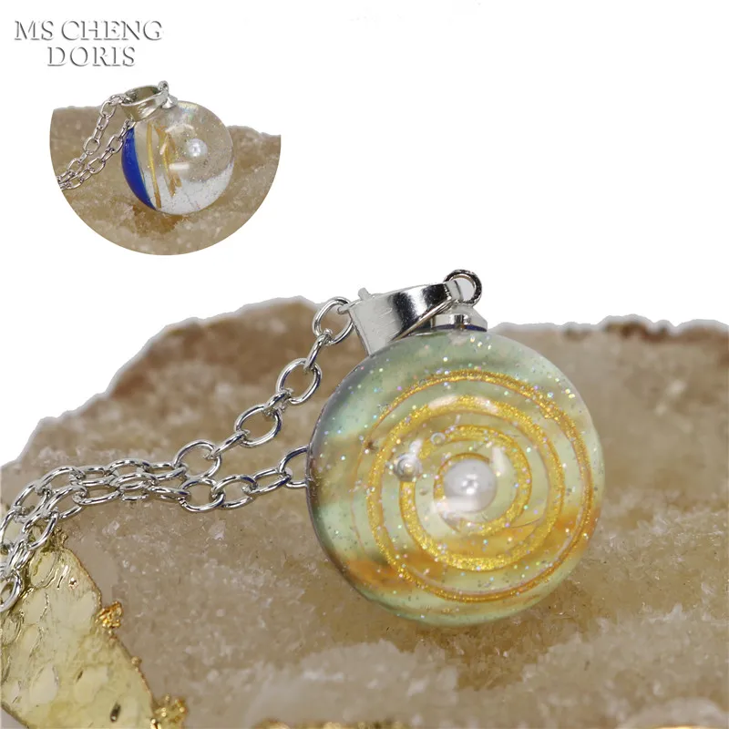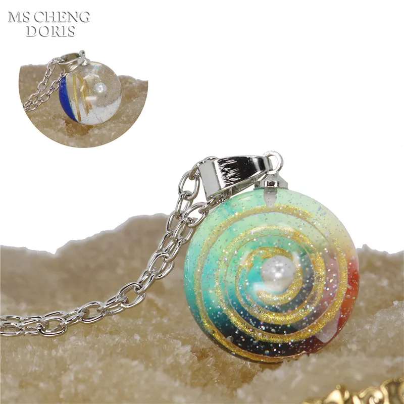 Шикарные прозрачные смолы в этическом стиле мяч, ожерелье с изображением небулы Galaxy Кулон Ожерелье голубое небо цепи ожерелье Вселенной Звездных ювелирных изделий