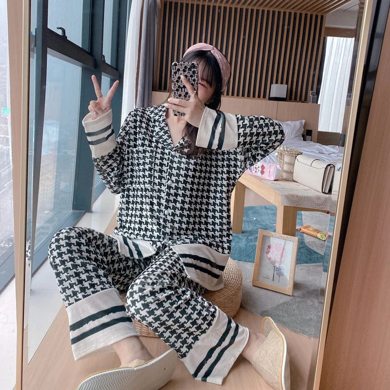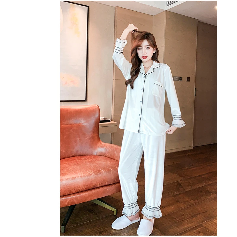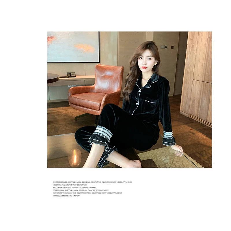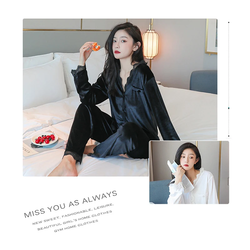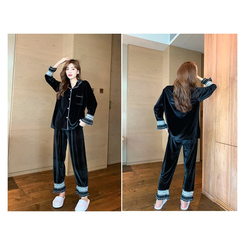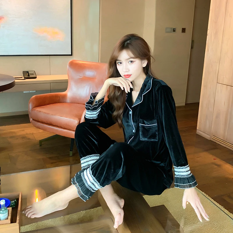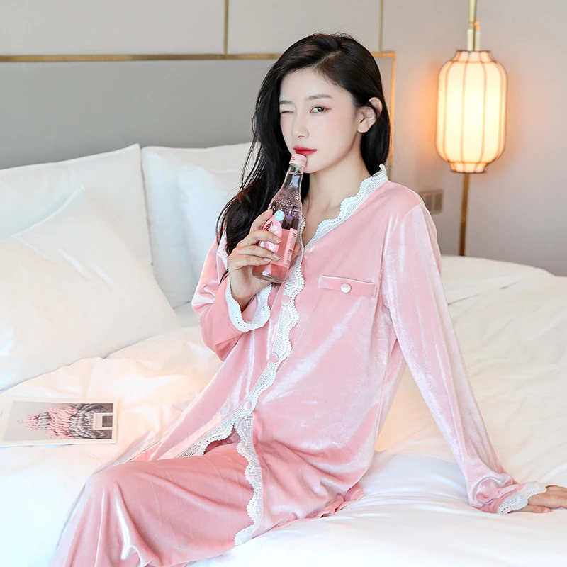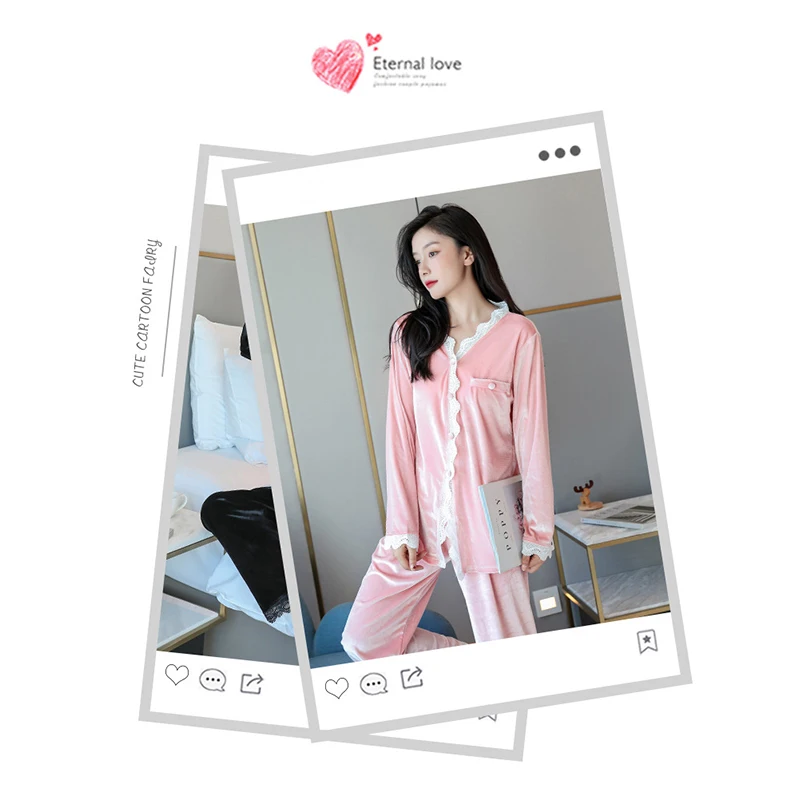 Женский пижамный комплект, бархатный Свободный кардиган с длинным рукавом, в Корейском стиле, на осень и зиму, 2 шт.