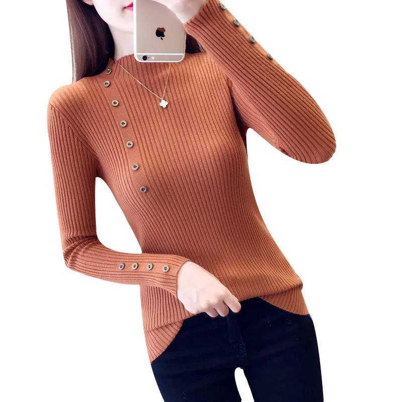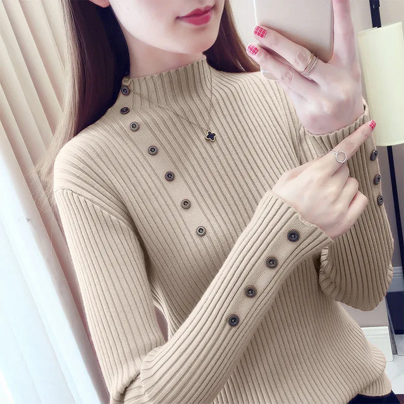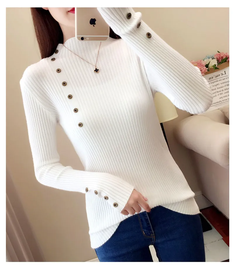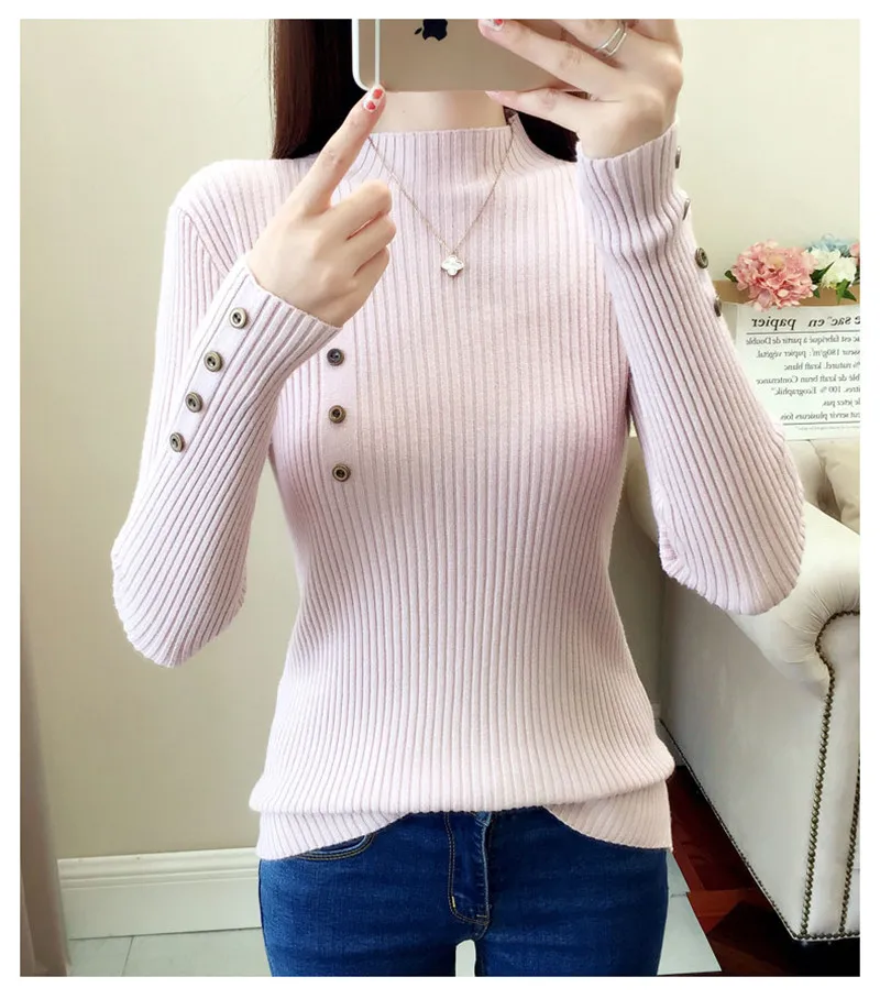 Женский вязаный свитер, облегающие пуловеры с высоким воротником и длинным рукавом, базовый джемпер в Корейском стиле, Осень-зима 2022